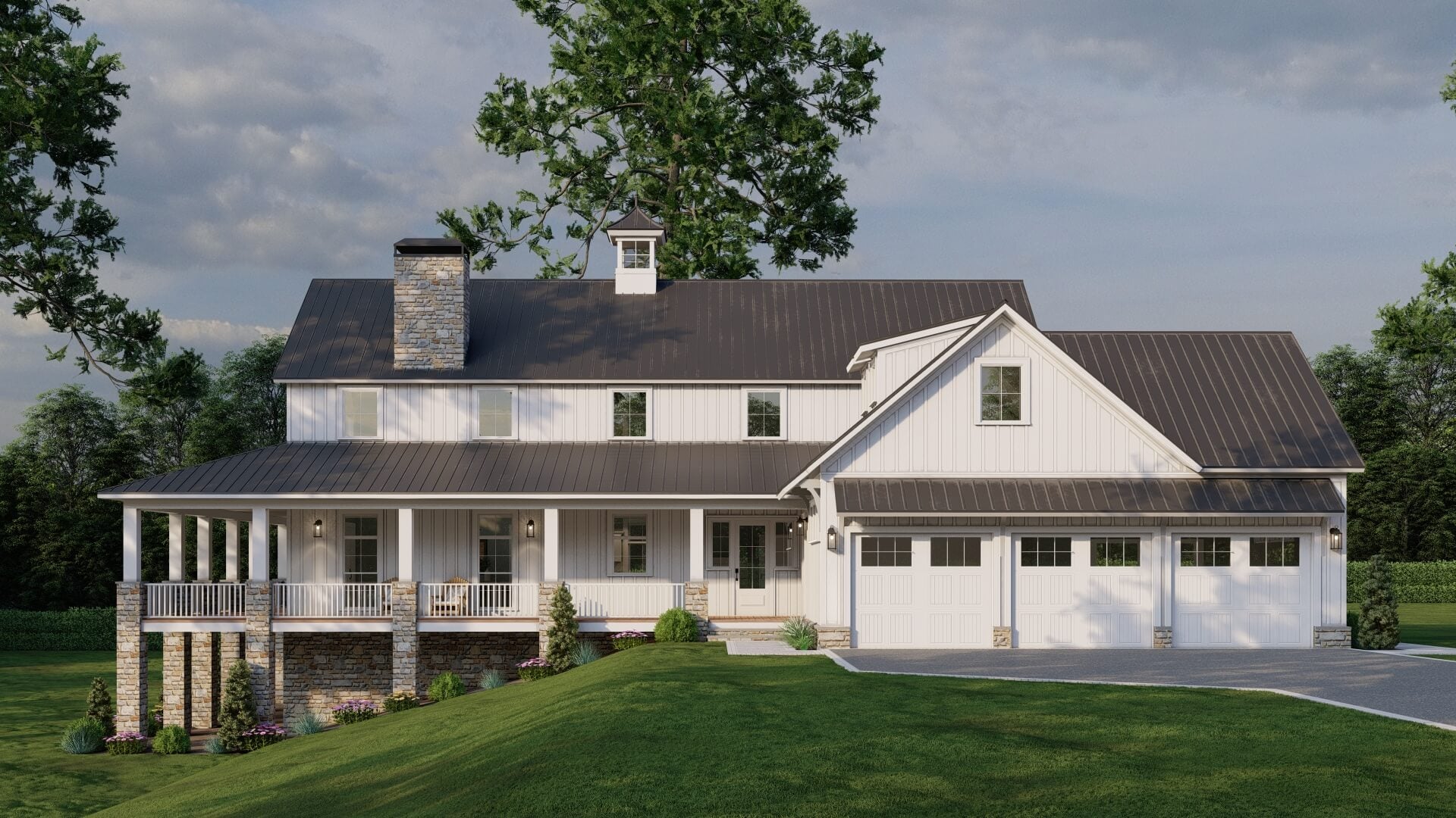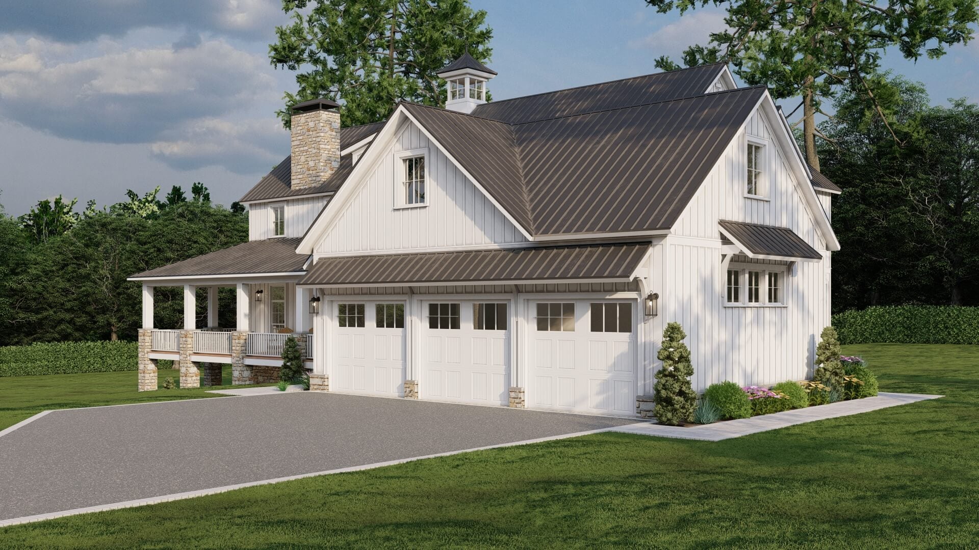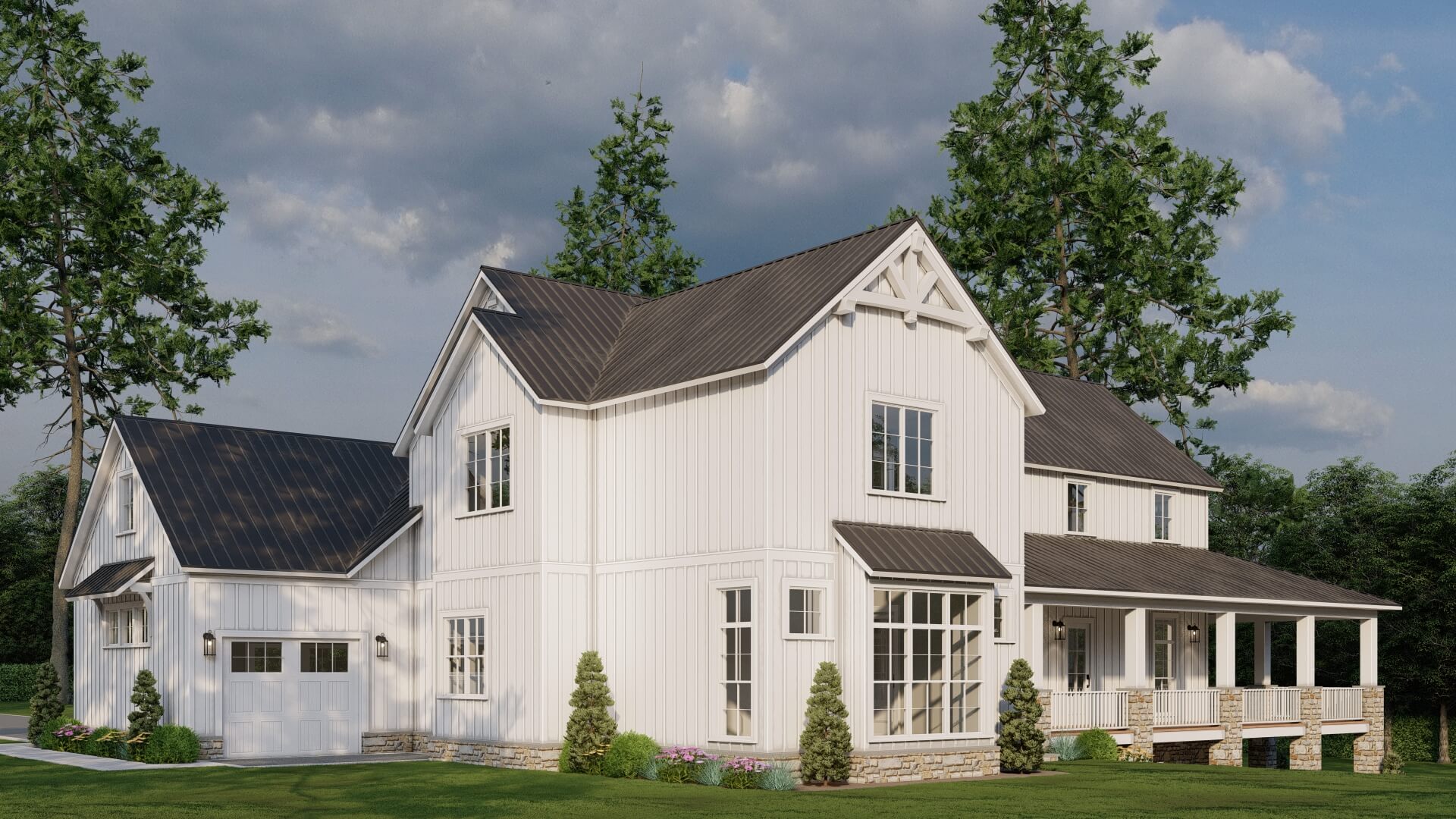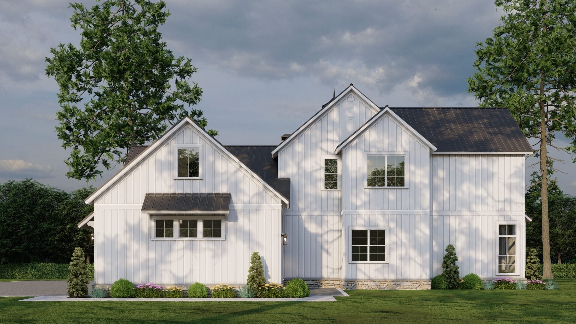 • Modern farmhouse architecture with strong, clean lines and stylish appeal