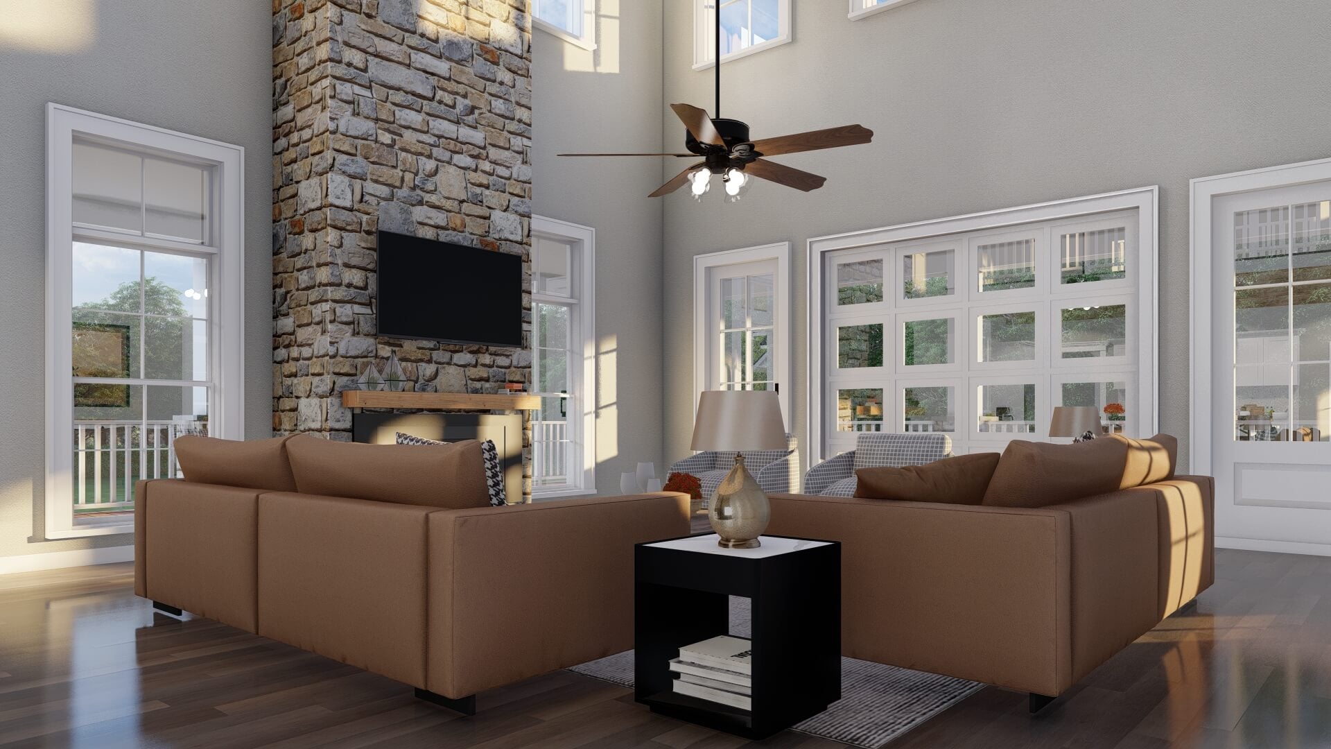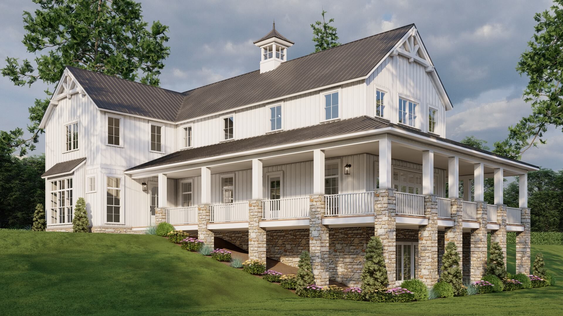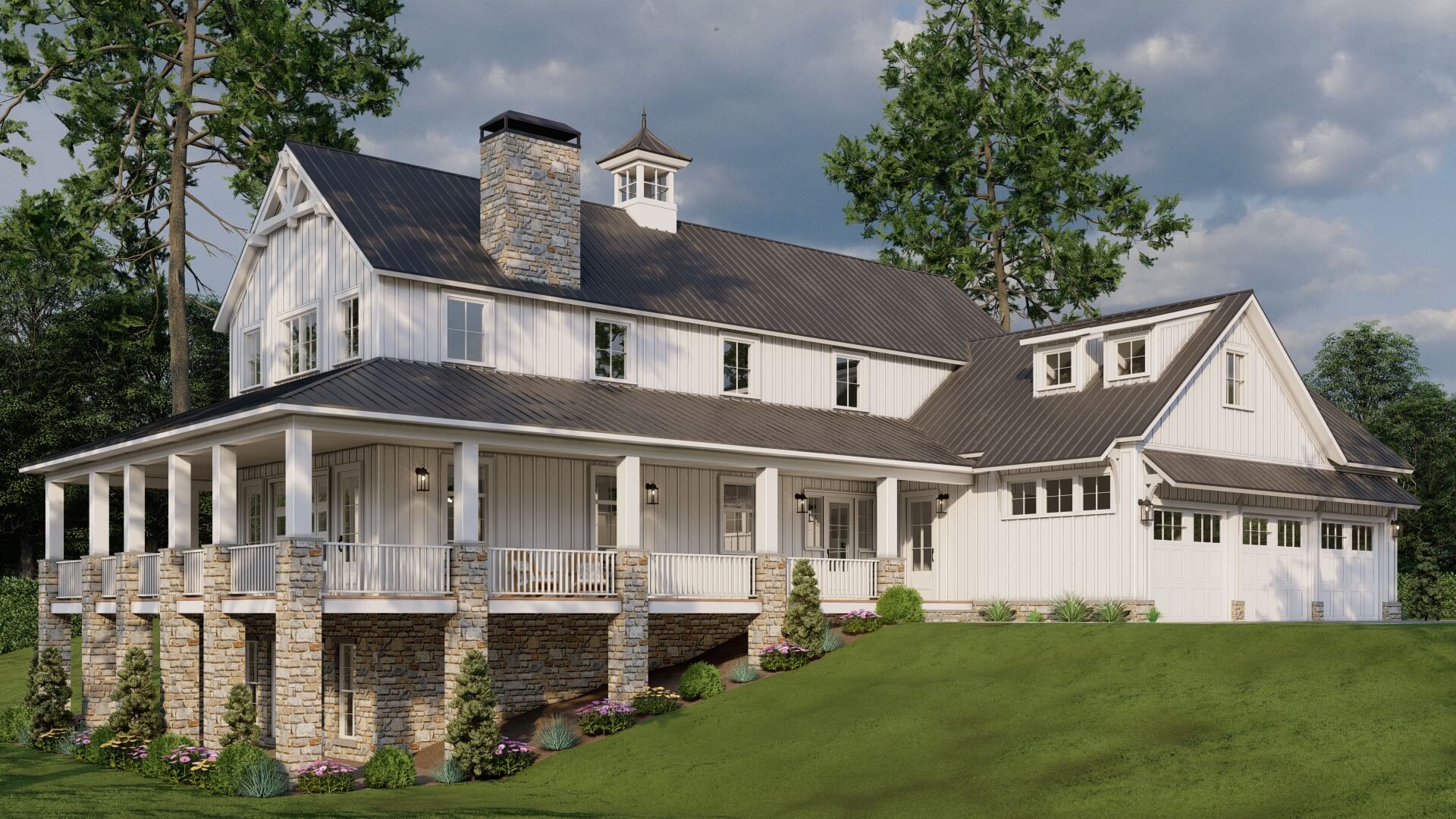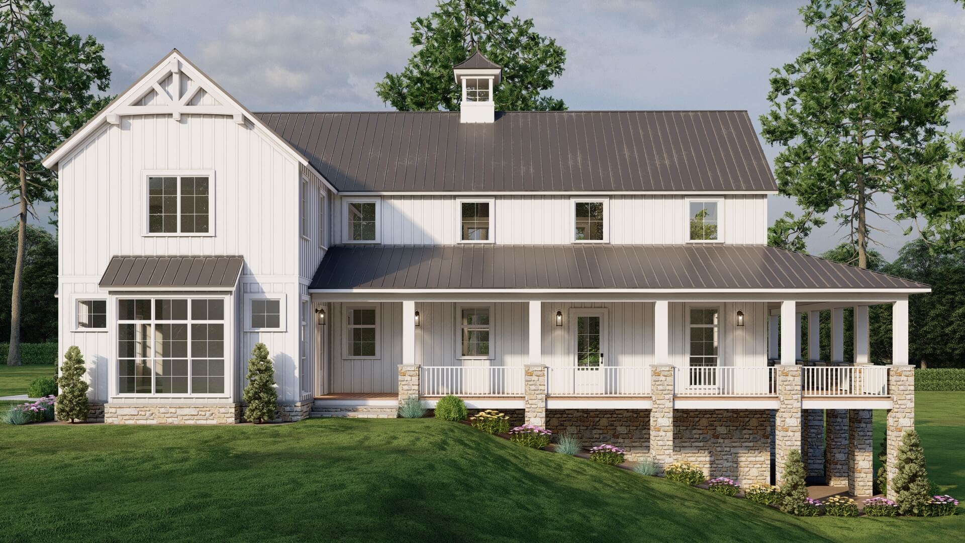 • Modern farmhouse architecture with strong, clean lines and stylish appeal