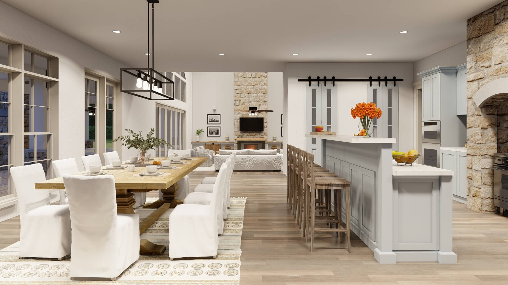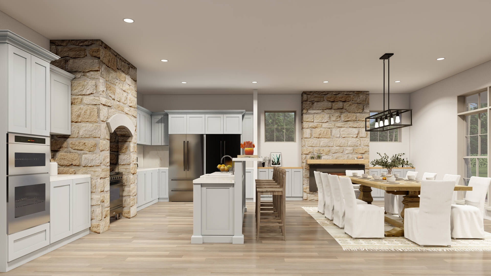 Discover The Croft Retreat House Plan 5441, a spacious, inviting home designed by Nelson Design Group. This two‑story plan offers approximately 3,188 square feet of beautifully designed living space, featuring 4 bedrooms, 3 full bathrooms, and 1 half bath. With high ceilings and an abundance of natural light, this space creates an inviting atmosphere. The kitchen features a large island, plenty of counter space, and a walk‑in pantry, making it perfect for family gatherings and entertaining.