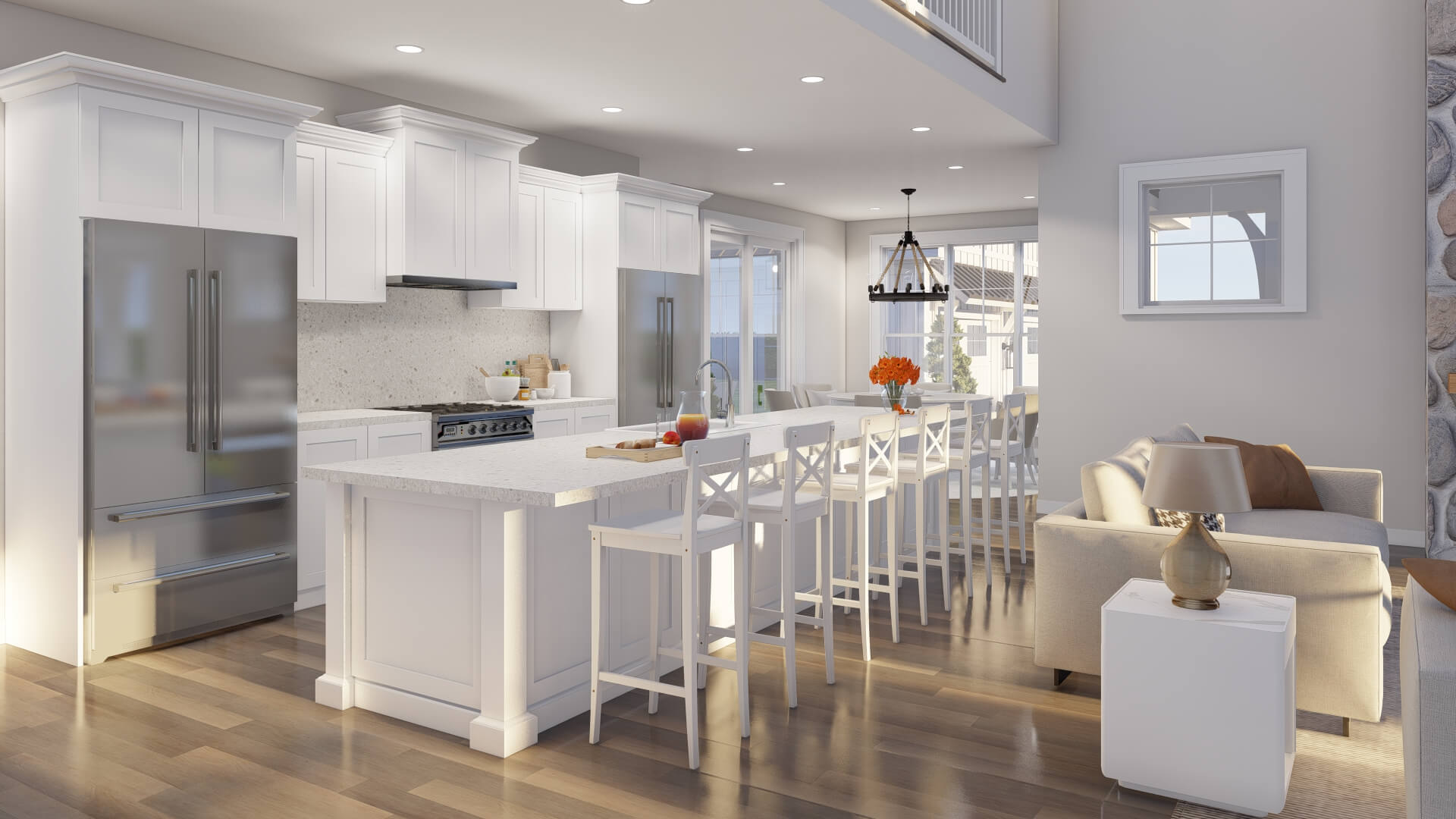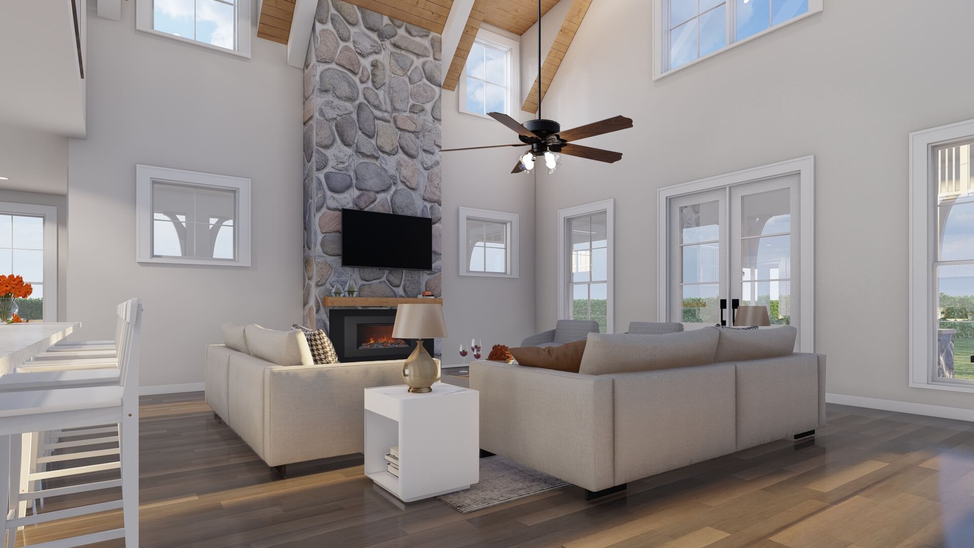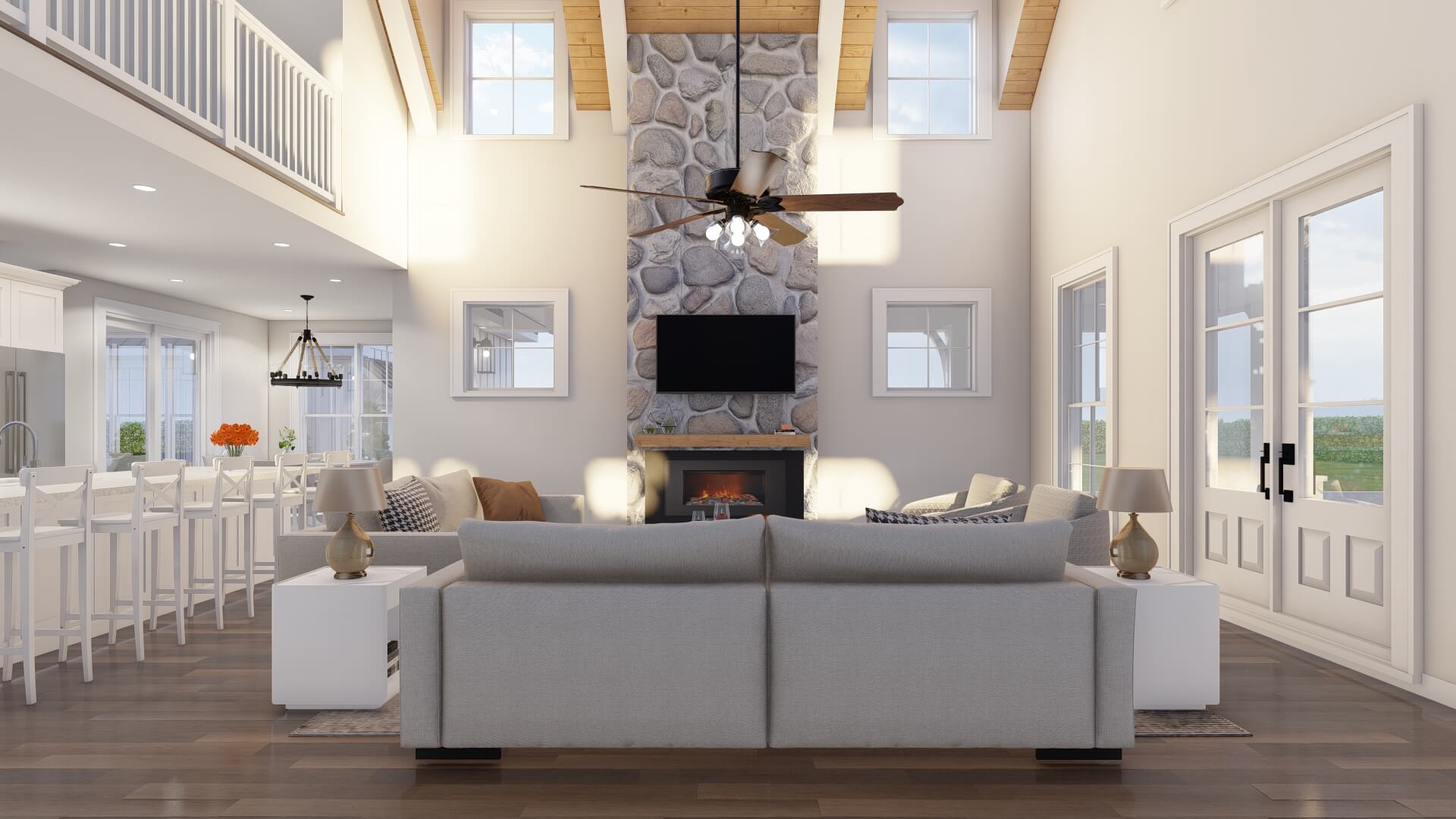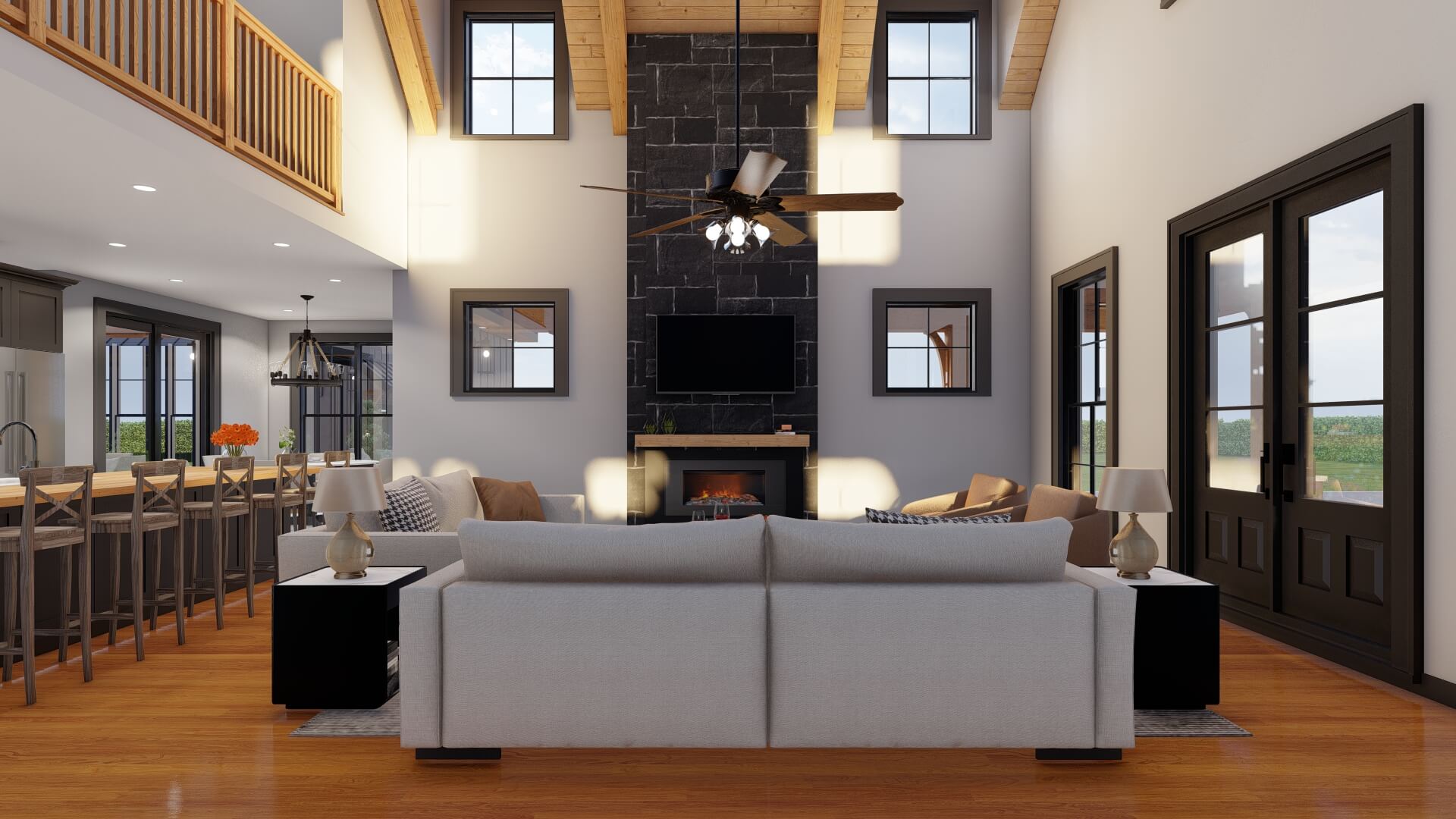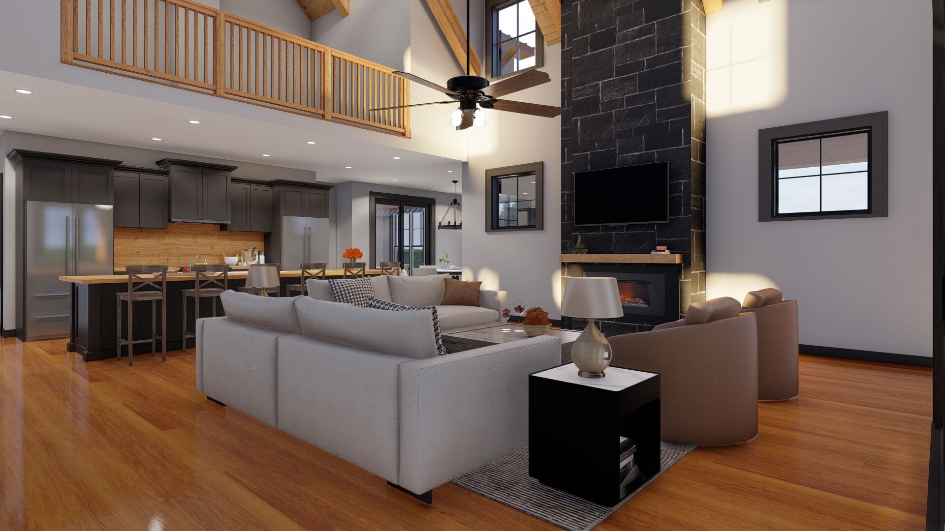 - On the main floor: you’ll find a great room with soaring ceilings, fireplace, and open connection to the kitchen and dining zone—designed for family gatherings and relaxed entertaining.