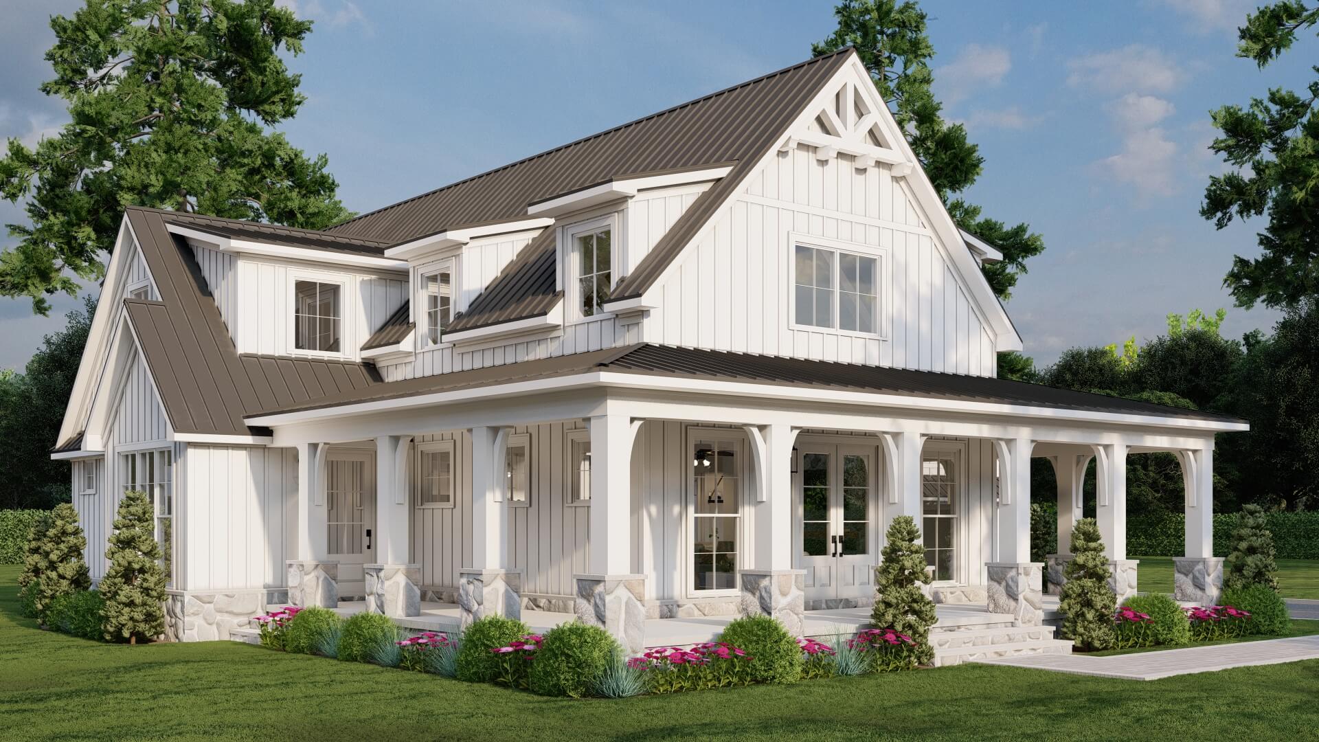 - Homeowners who want a stylish exterior with farmhouse character and inviting porches.