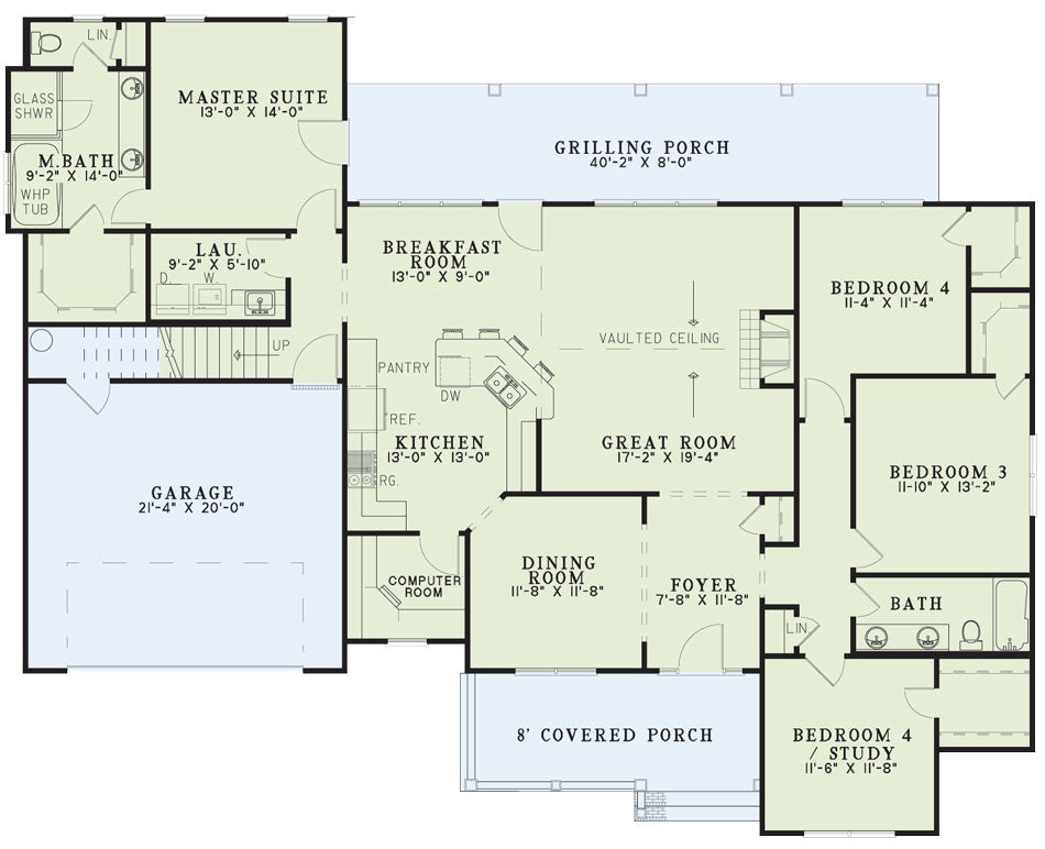 A stunning addition to our Traditional House Collection, Thomas Road draws attention to the neighborhood with a cozy covered porch and craftsman style accents. Inside, convenience expounds. The expansive Great Room offers vaulted ceilings and a cozy fireplace. The Kitchen features a computer room and snack bar and opens to the Breakfast Room, affording easy entry to the rear Grilling Porch. On the right side of Thomas Road, you will find three bedrooms, one of which can be converted into a study, if desired. All bedrooms offer walk-in closets, and the shared hall bath is located between Bedrooms 3 and 4. The opposite side houses your private Master Suite, complete with direct access to the Grilling Porch from the master bedroom and a luxurious Master Bath, showcasing a whirlpool tub, double vanities, and corner glass shower. Above the 2-car garage is a spacious Bonus Room, with creative ceiling heights and plenty of attic space. How would you customize this amazing house plan?