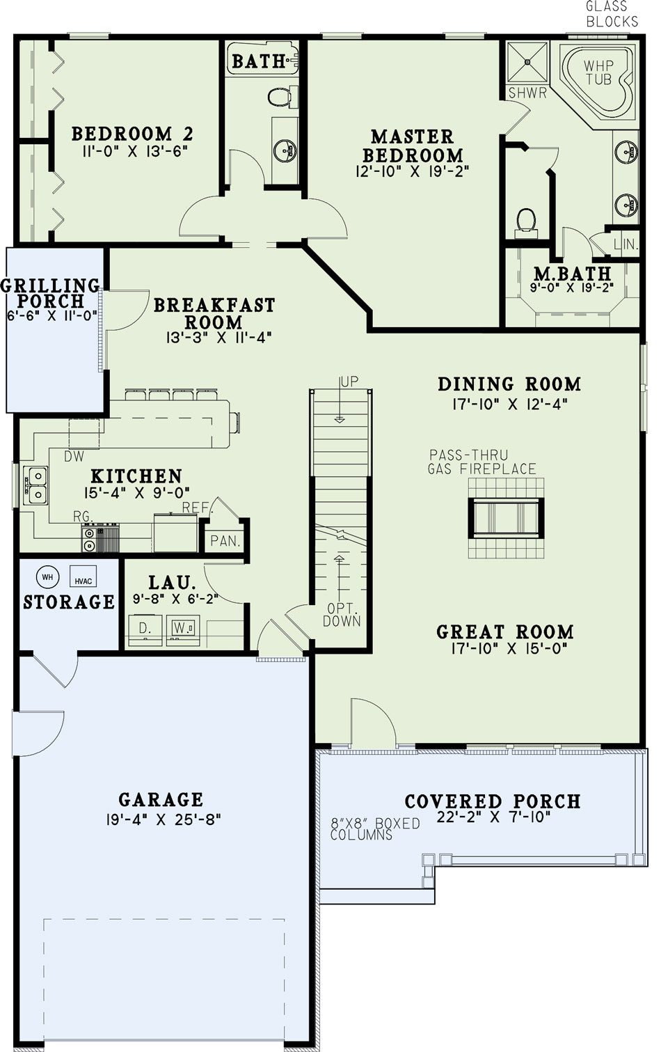 You enter upon the covered front porch adorned with eight-inch boxed columns of this home and sense ambiance. The great room sharing a pass-through fireplace with the dining room. The kitchen offering a snack bar opens to the breakfast room accessing the side-grilling porch. The master bath offers a large walk-in closet, shower and corner whirlpool tub accented by glass blocks. A lone bedroom with full bath stands ready for overnight guests. Ascending the stairway you will find another bedroom with walk-in closet, optional game room with full bath access and storage room.