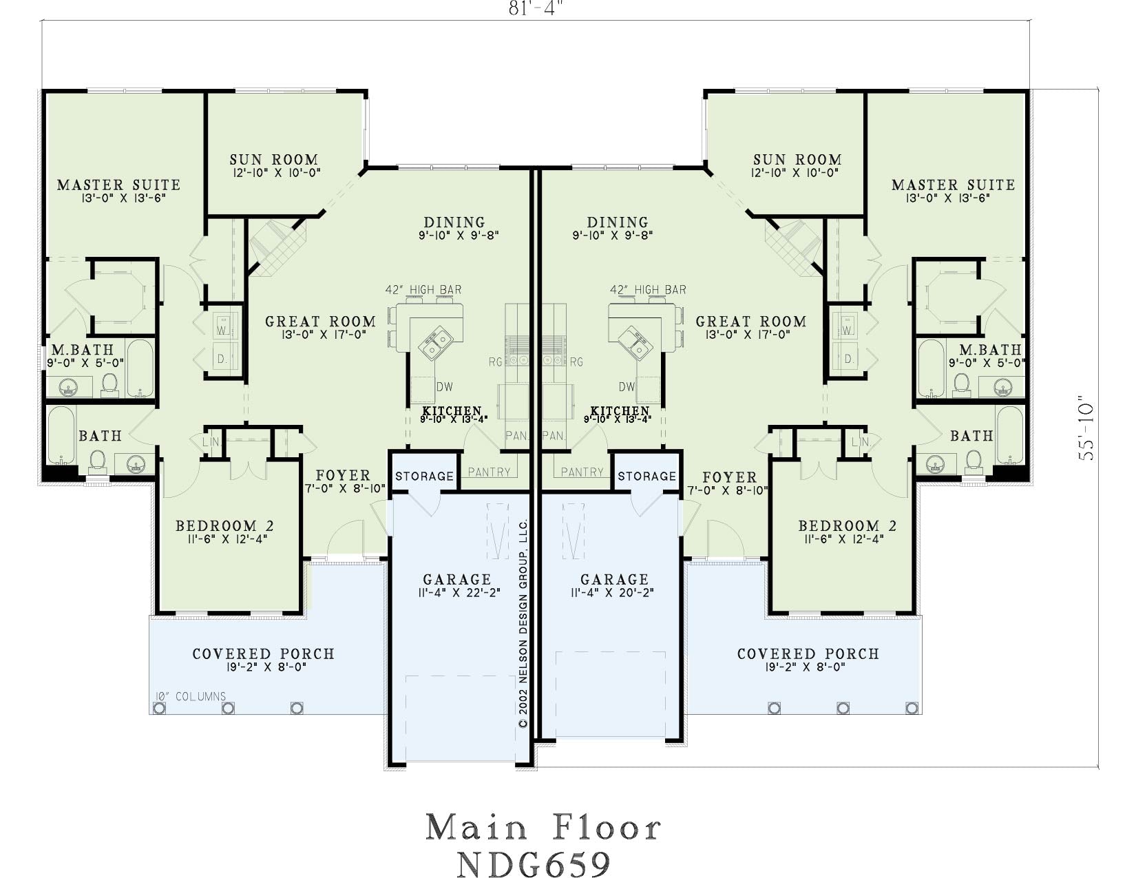 House Plan 659 Brookshire – NDG 659 | Attractive 2-Bedroom, 2-Bath Multi-Family House Plan