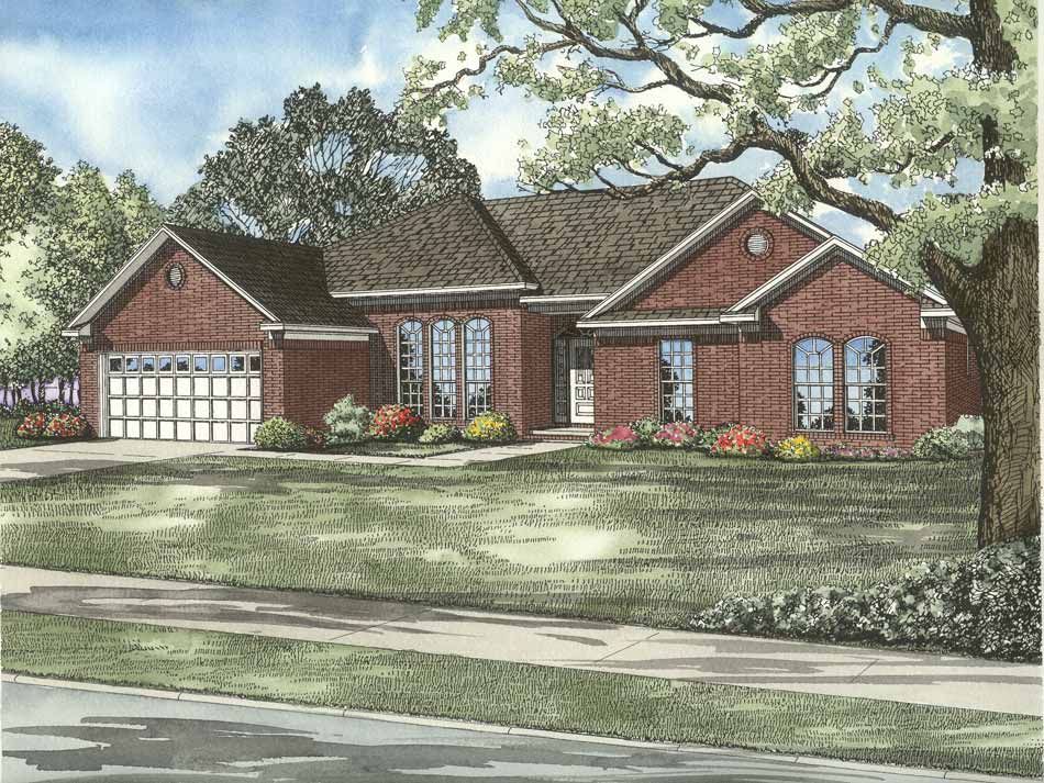 Round-topped windows add to the appeal of this Nelson Design Group home. Through the foyer, you’ll notice the elegant columns framing the entryways into the formal dining room. The expansive great room features a nine-foot boxed ceiling, fireplace, and access to the optional grilling porch at the rear. Three secondary bedrooms fill one side of this home and share a centralized full bath. On the opposite side of this design, you’ll find the exquisite master suite with an amenity-filled master bath