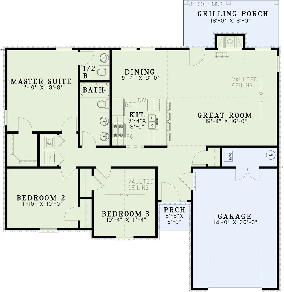 Discover House Plan NDG 685 Spruce Street – Cozy Single-Story Living with Vaulted Ceilings