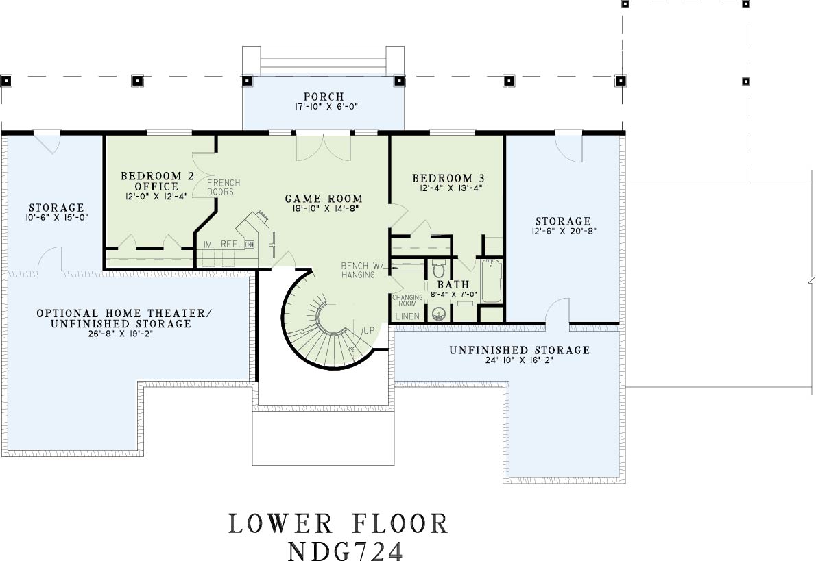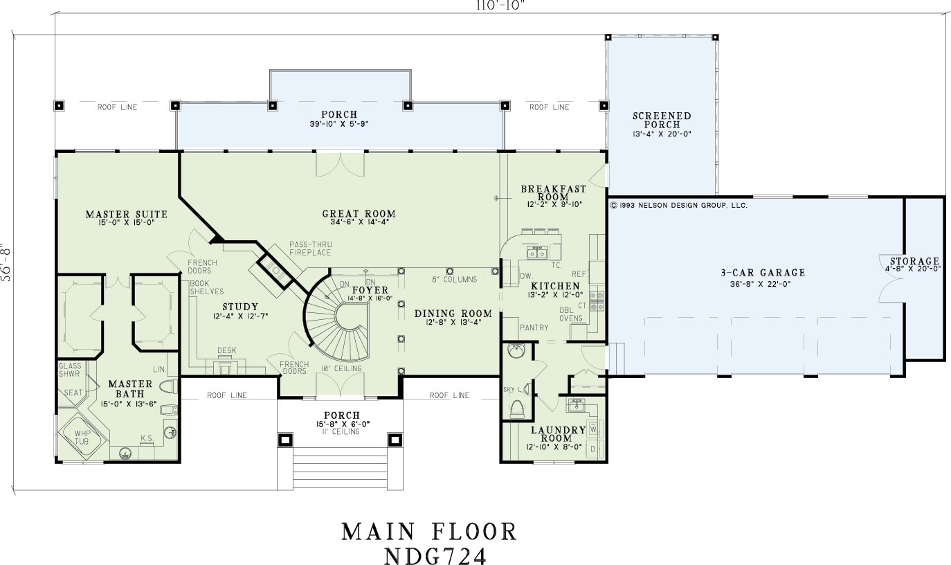 This sprawling Nelson Design Group home exudes elegance. Only columns divide the dining and great rooms, creating an open feeling throughout. A screened porch off of the breakfast room lets you enjoy nature without the added distraction of insects. The study includes loads of bookshelf space and French door access to the amenity-filled master suite. A spiral staircase in the foyer leads to the lower floor of this home. While downstairs, the kids are sure to enjoy the privacy of their own bedrooms as well as the inclusion of a game room. An optional home theater and plenty of storage complete this design.
