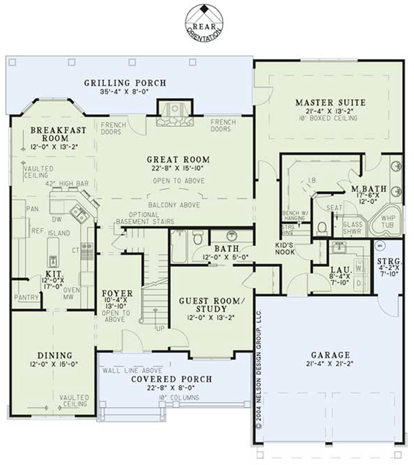 The gorgeous exterior of this Nelson Design Group home, coupled with its unique design, will create a memorable experience for all who see it. A large covered porch welcomes you and your guests inside where the great room will set the perfect mood for all occasions. A fireplace and French doors to the rear grilling porch help to enhance the great room. An island and a high bar with seating are just a few of the luxuries you’ll discover in this kitchen, just a few short steps away from the breakfast and dining rooms. Upstairs, one can’t help but admire the stunning view from the theater balcony before traveling into the media room or one of the remaining bedrooms. Two attic access doors also lend more than enough storage possibilities.