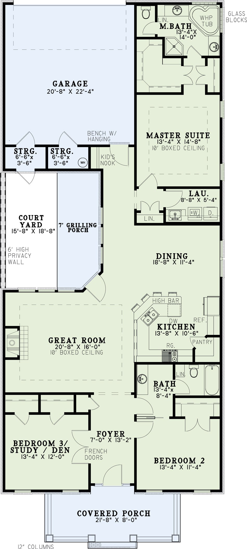 House Plan NDG 986 – Elm Street: Affordable 3-Bedroom Ranch with Grilling Porch & Courtyard