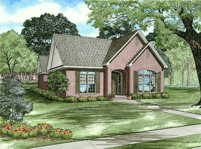This unique design by Nelson Design Group offers three exterior selections for you and your home builder to choose from. Brick, stone and a combination of both allow you to achieve the street appeal that will best suit your neighborhood. The covered entry leads into the foyer with French doors to the study or den. The open great room features a boxed ceiling treatment as well as a gas fireplace. The step saver kitchen has a convenient walk-in pantry with a snack bar open to the dining area. The courtyard is accessed from the great room and can feature an herb garden. The master suite is tucked to the rear of the design for privacy.