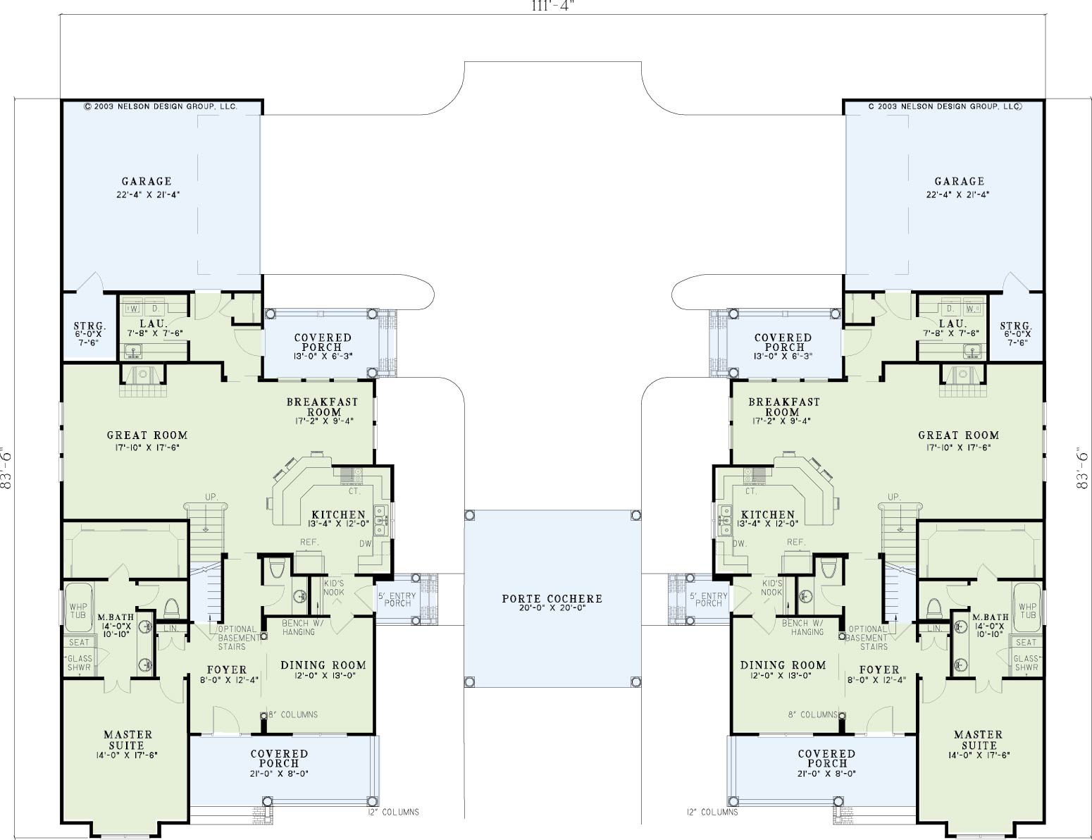 Nostalgia for the past with the need for modern convenience in a neighborhood setting makes this traditional dual home design the perfect choice. Some of the exterior highlights are a covered front porch and an entry porch in the rear of the home. The home features a main floor master suite with a master bath with a separate whirlpool bath and shower. Upstairs the growing family will appreciate three bedrooms and a home theater/game room.