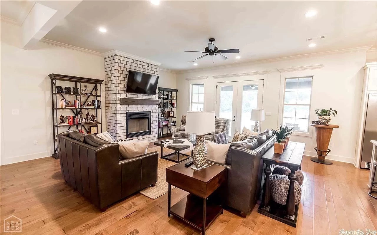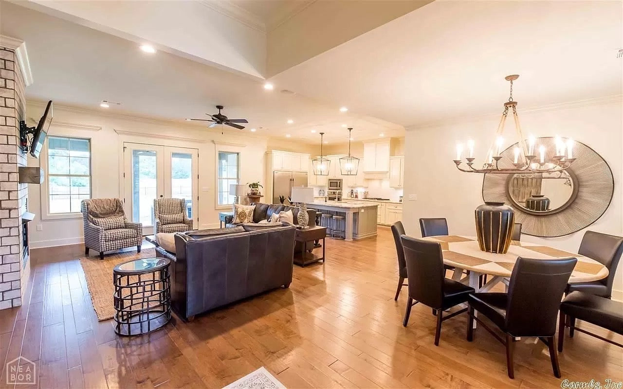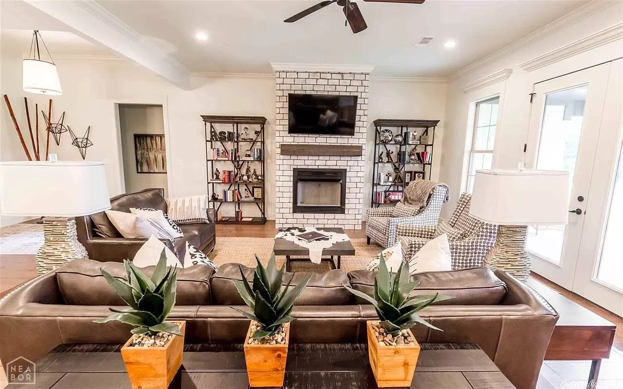 The central living space features vaulted ceilings, abundant windows, and a fireplace — all designed to bring light, warmth, and focus to daily life. -