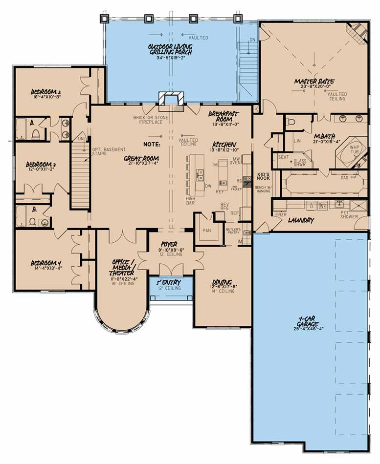 - Optional daylight basement: Add even more living space with an expansive lower level that includes a game room with kitchenette, safe room, fitness/storage area, and direct patio access.