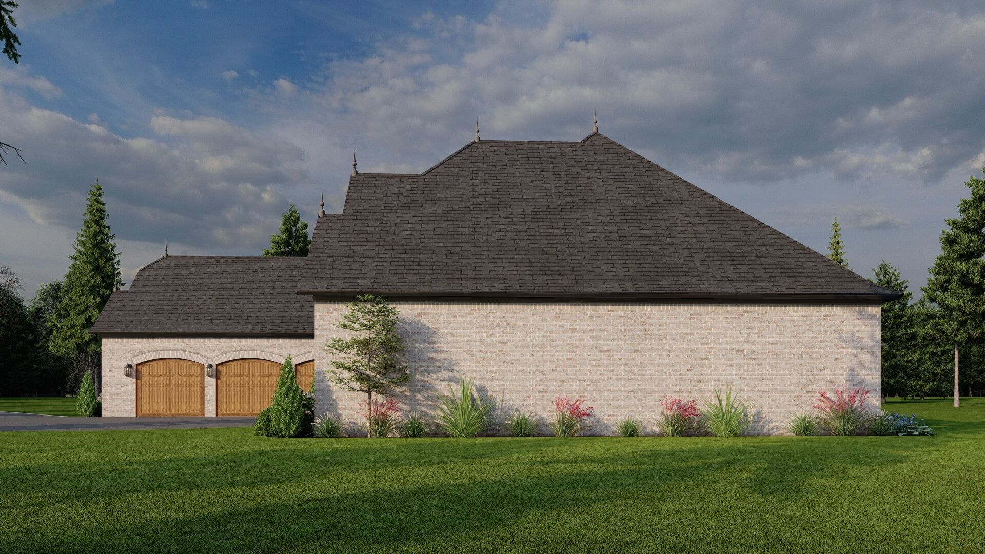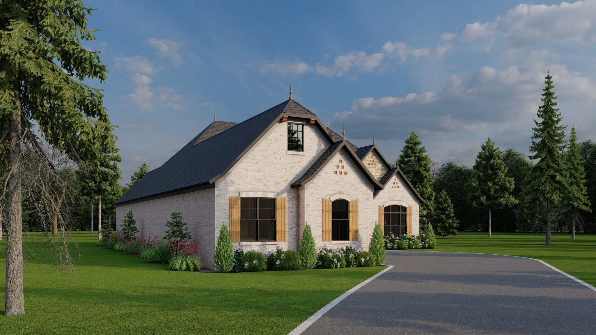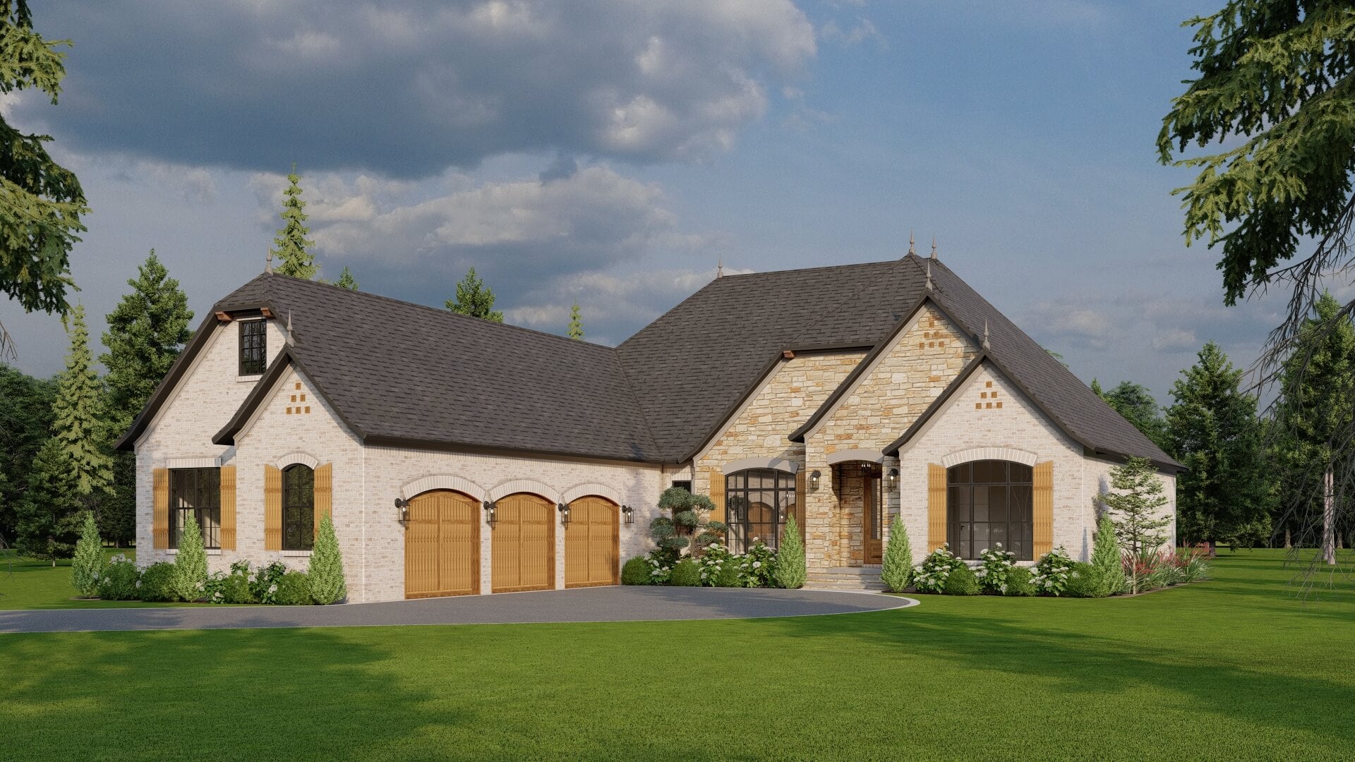 - Inviting Cottage Architecture – The design features steep rooflines, stone and siding accents, and covered porch elements that lend a storybook charm without sacrificing sophistication.