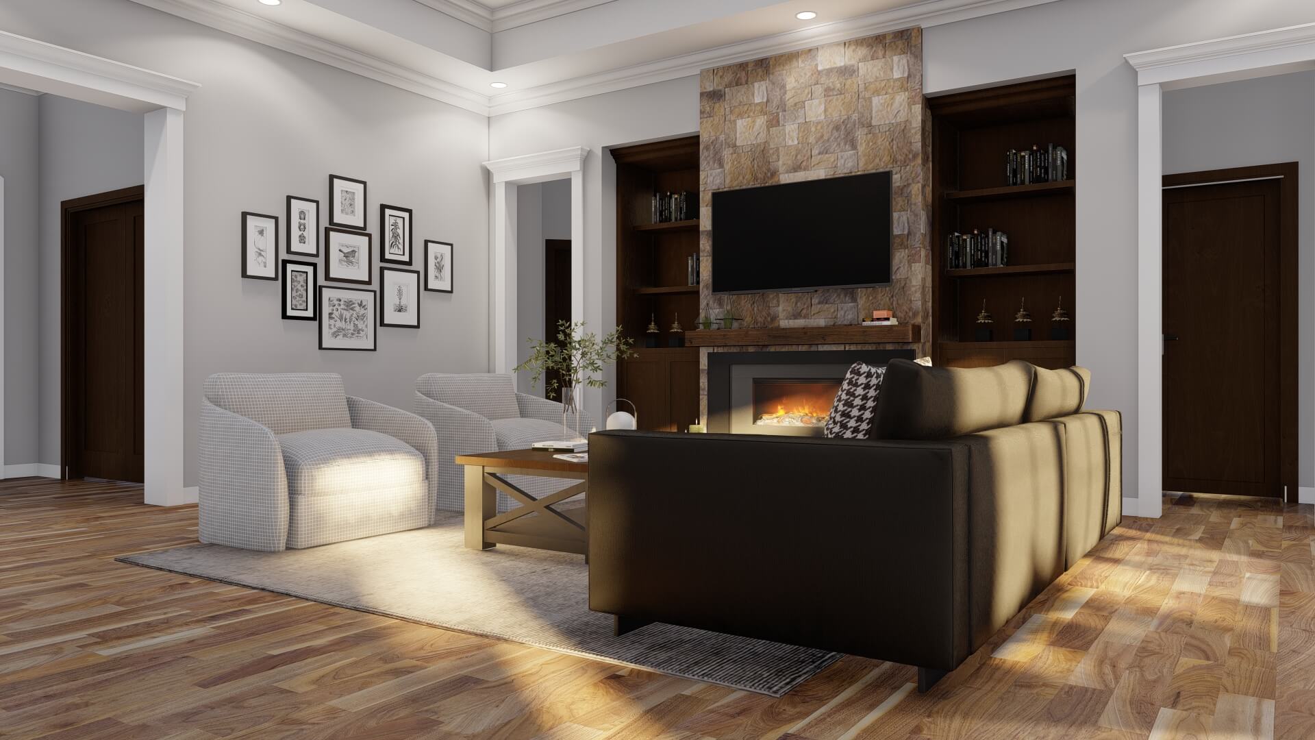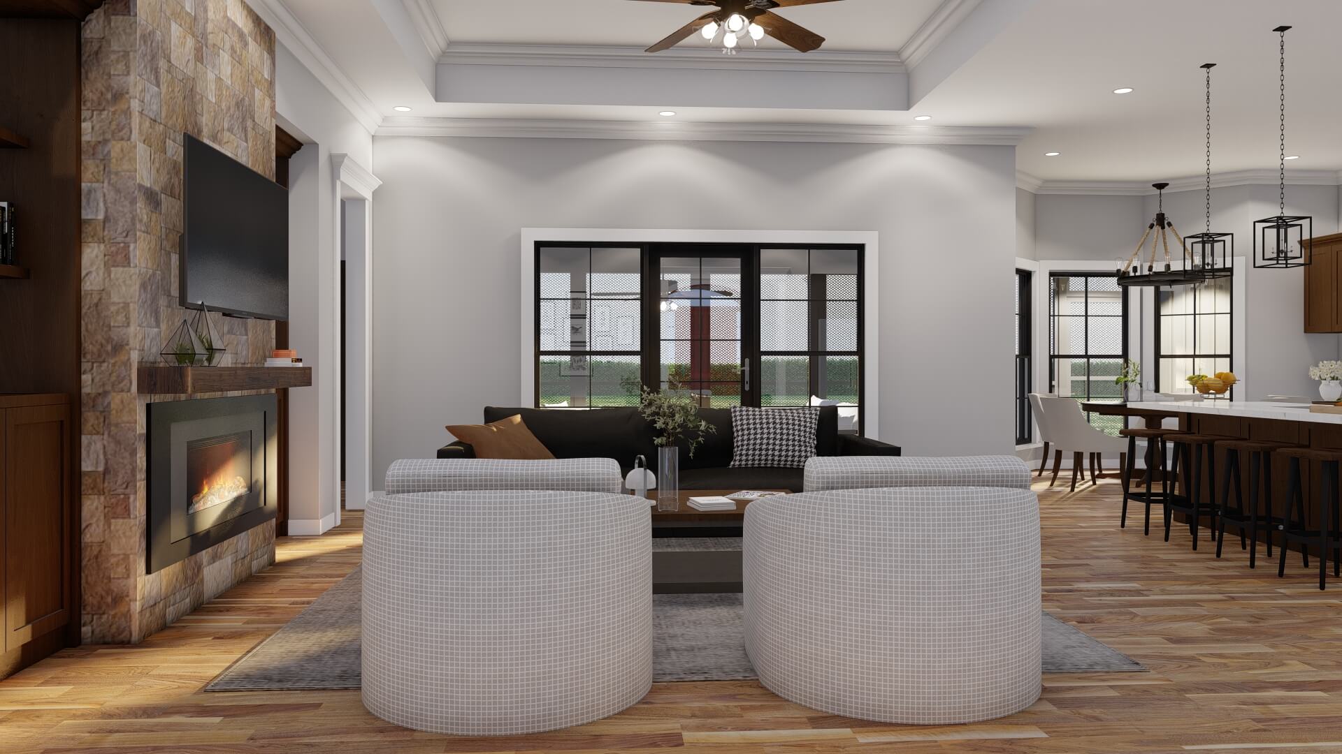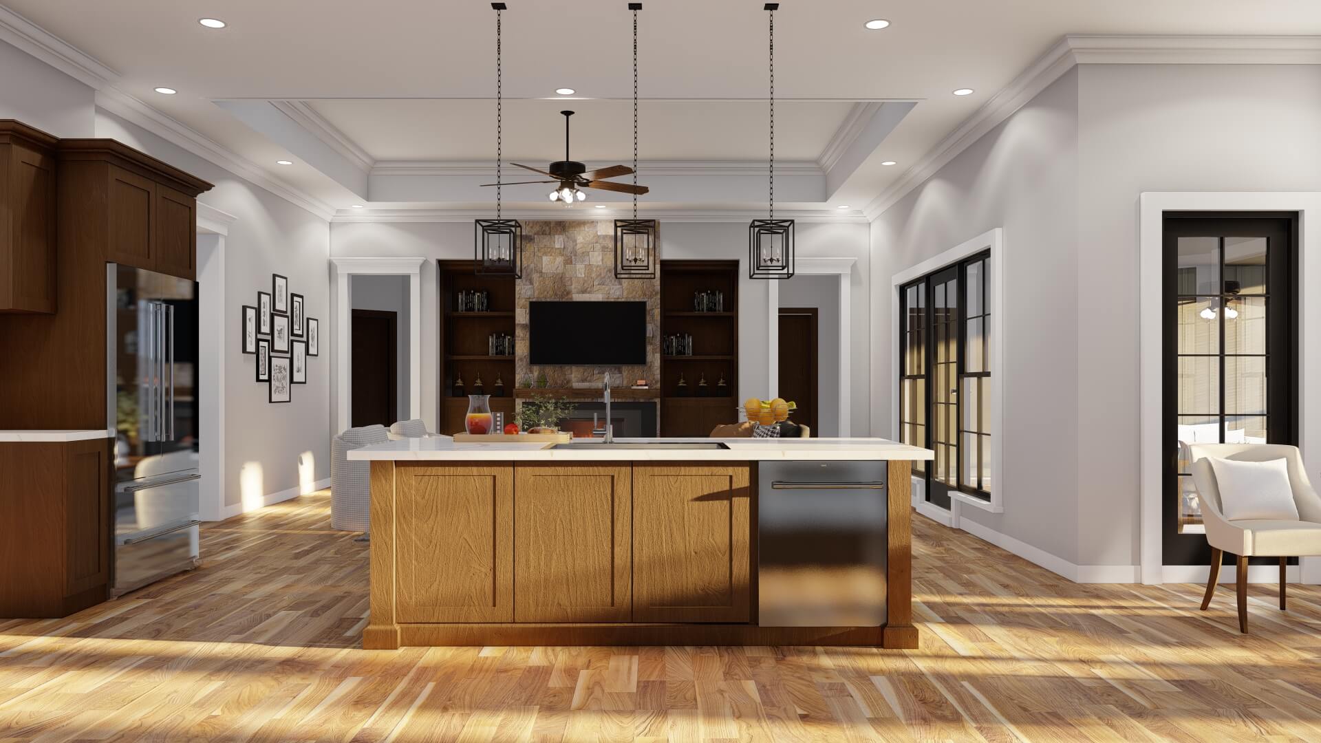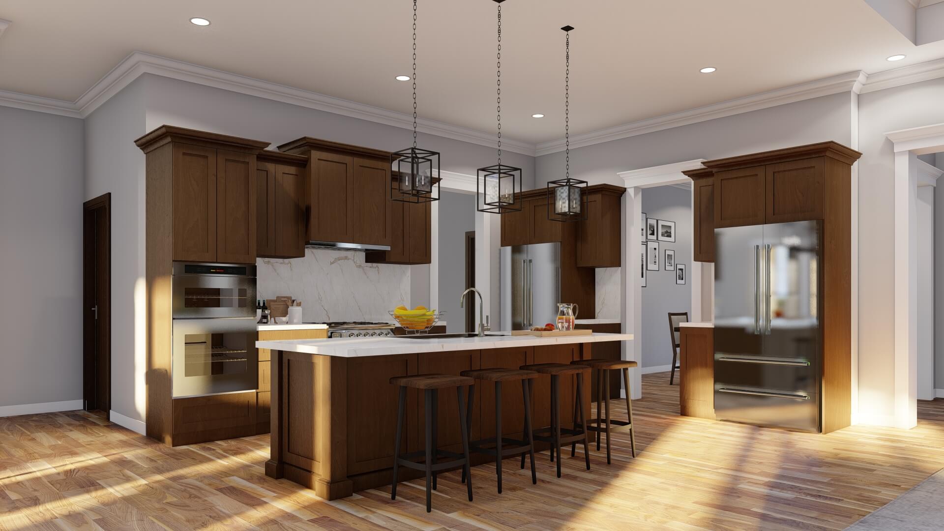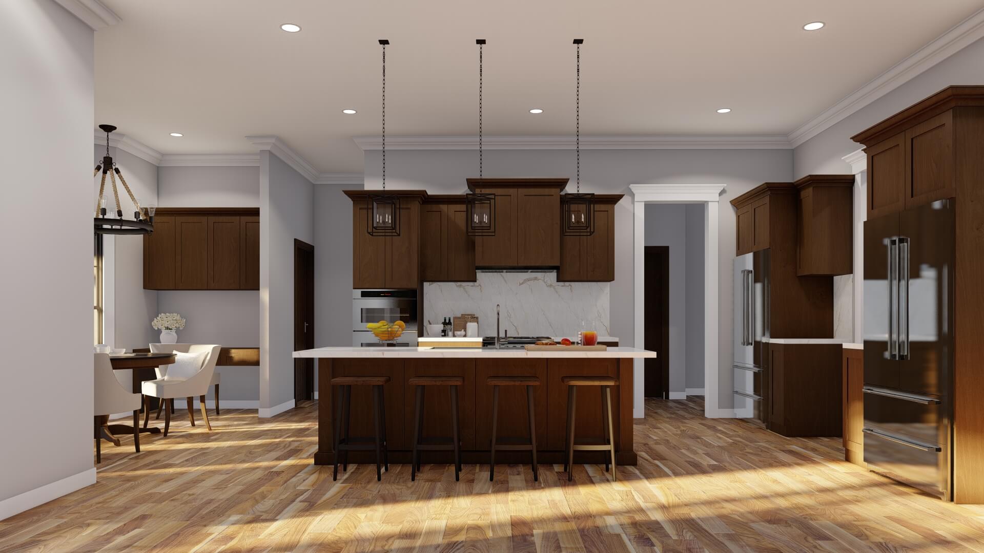 A large foyer guides you into formal living and dining spaces, but the heart of the home is the open great room and kitchen. The design encourages connection and flow — perfect for family life or hosting guests.