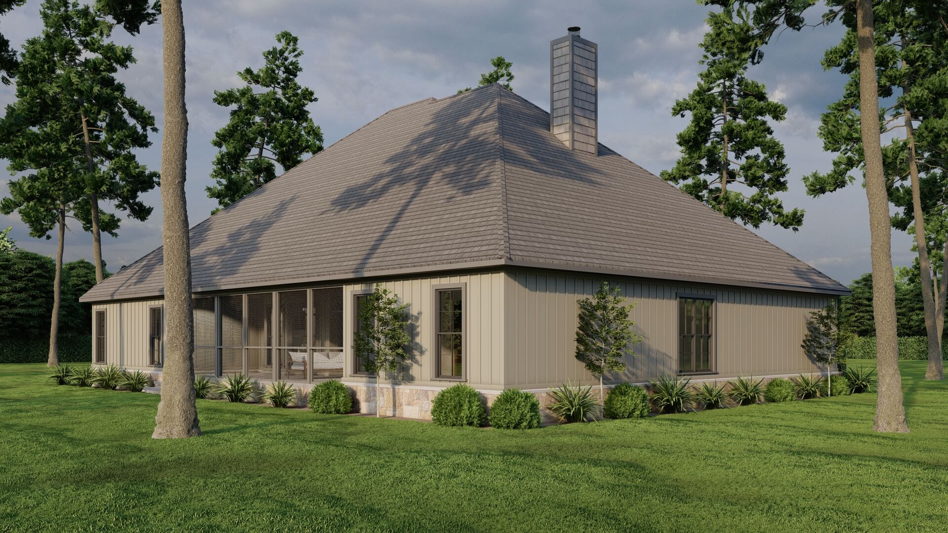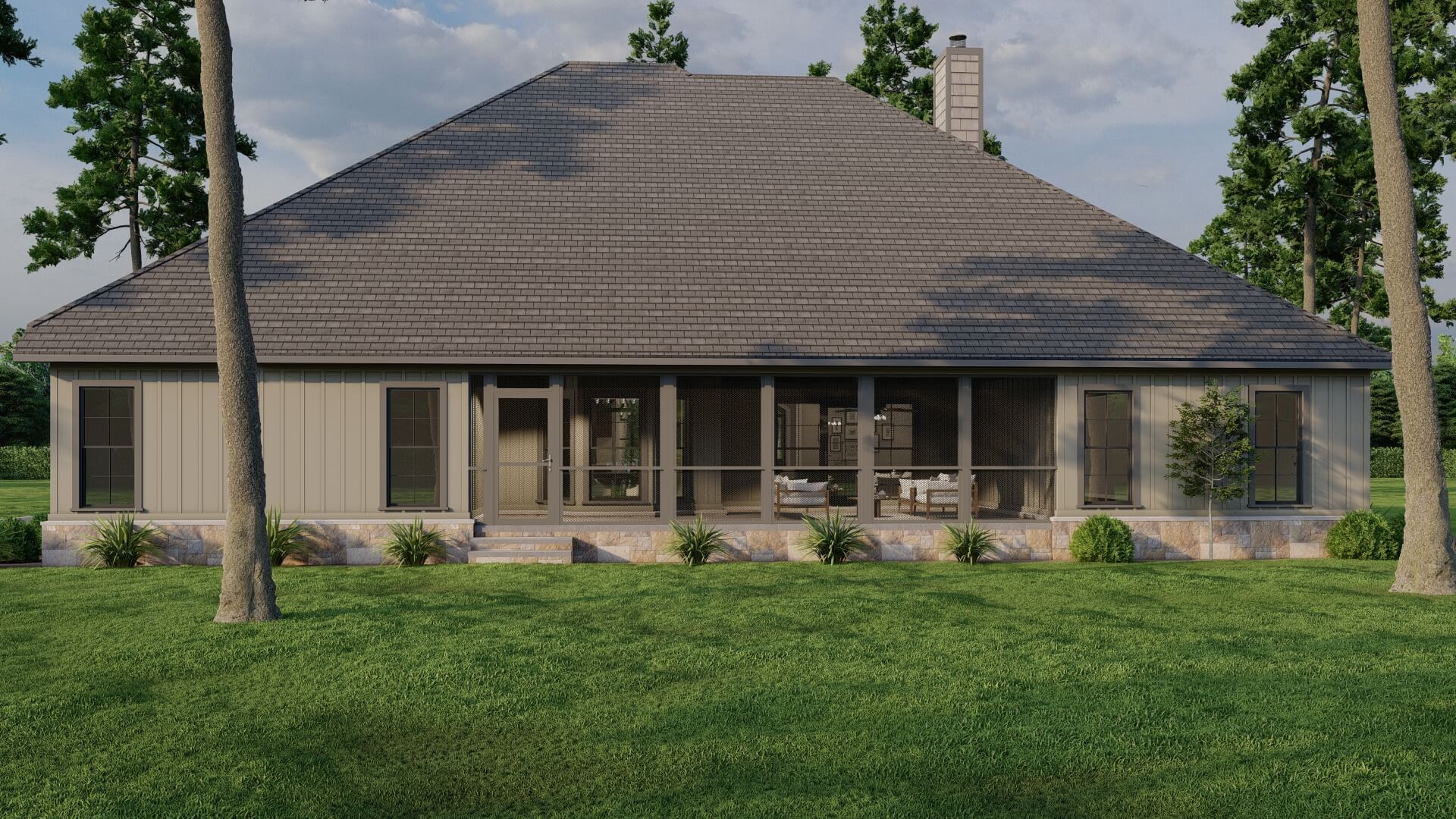 The kitchen features a big island where guests can gather, plus seamless access to the great room. From there, the party can spill out onto a spacious screened porch, allowing indoor-outdoor living in any weather.
