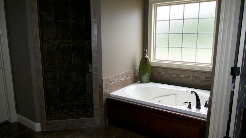 The master suite is located on the left side of the home, offering privacy for the homeowner. It includes a master bath with his and hers vanities, a whirlpool tub, a large corner glass shower, and a massive walk-in closet. -