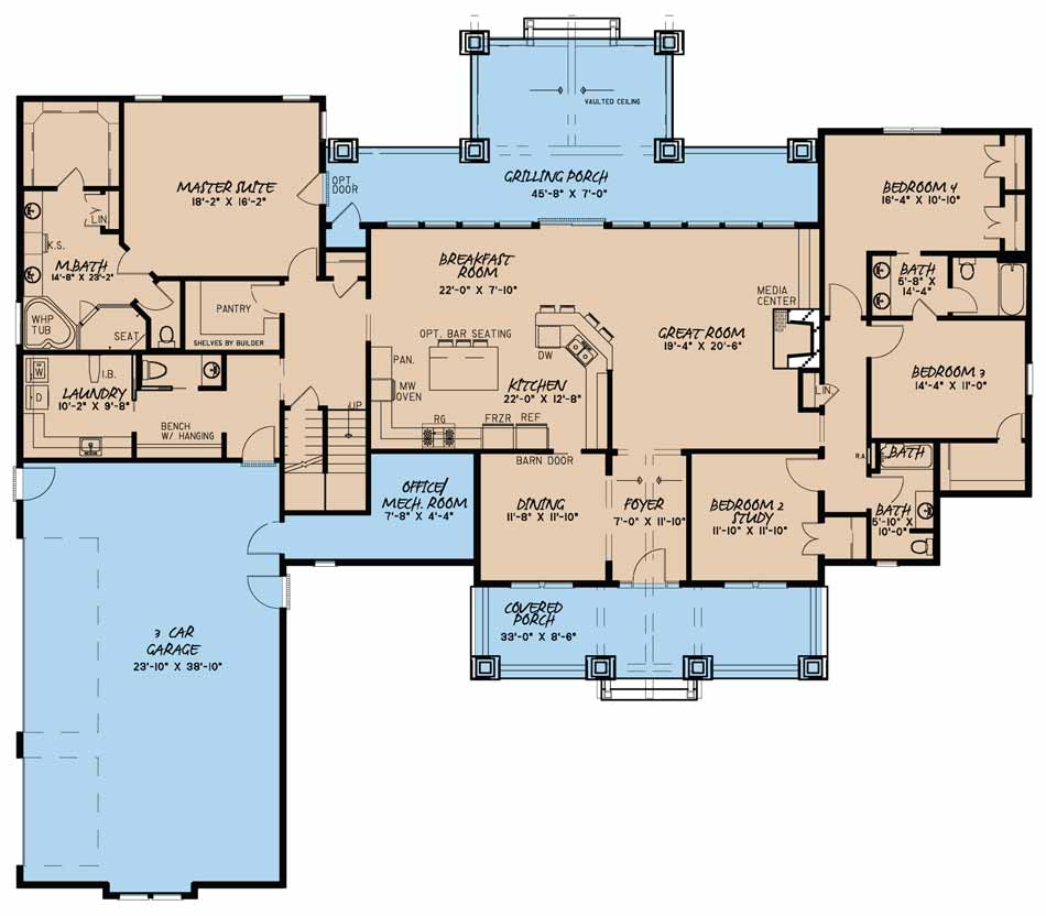 The master suite includes a spacious bath and walk‑in closet. An optional door leads directly to the large rear grilling porch — bridging indoor comfort and outdoor enjoyment. -