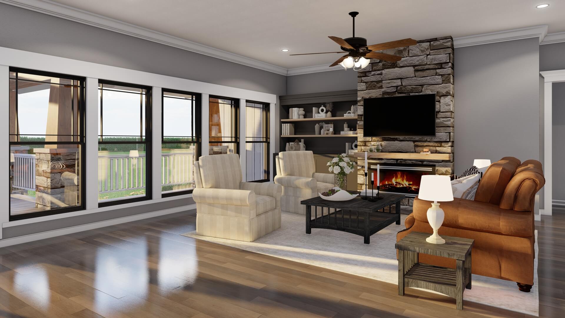 In addition to the covered front porch, the design includes generous porch areas and a grilling porch, extending the home’s livable footprint into nature.