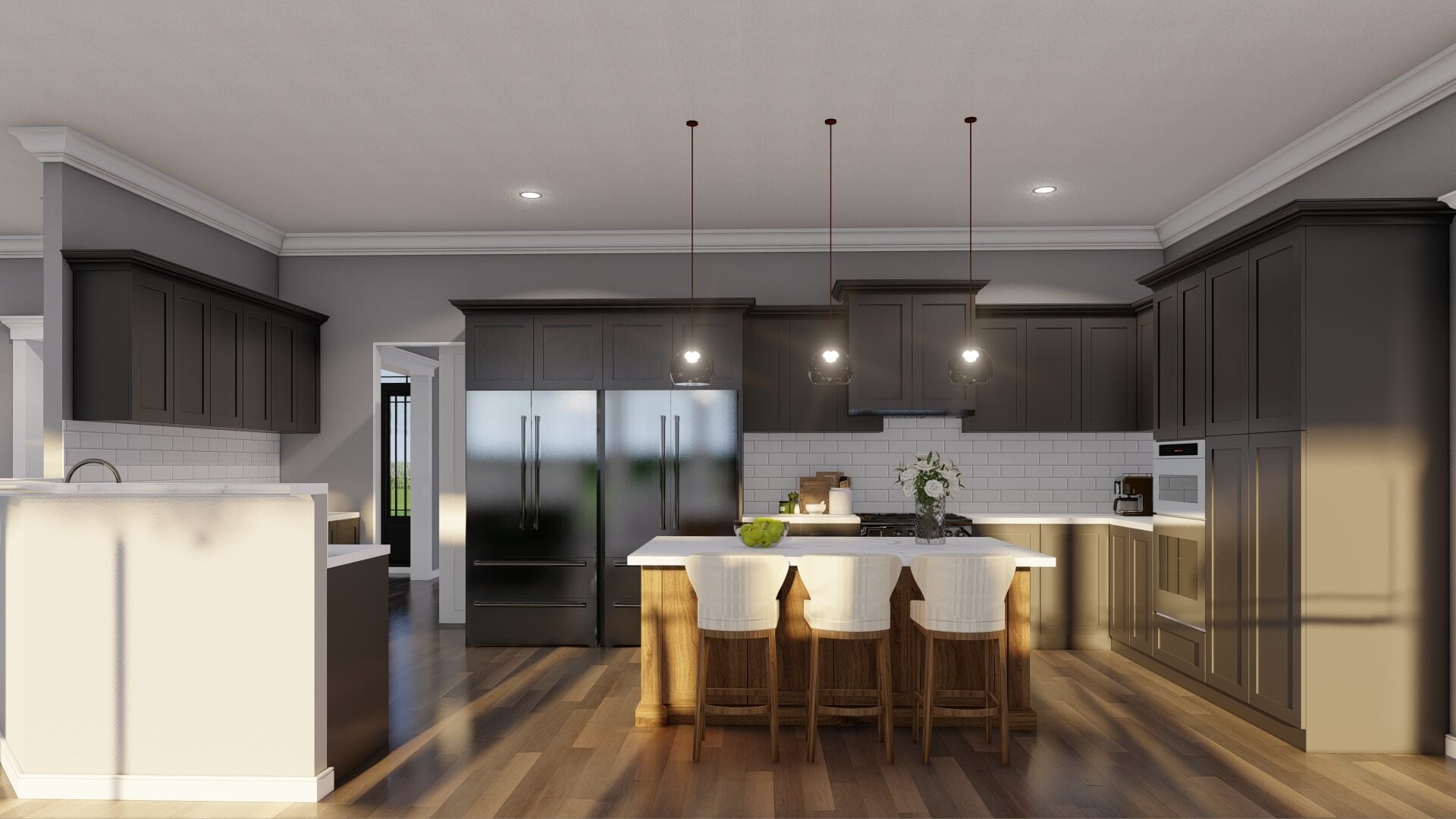 With an open concept layout, the great room and kitchen seamlessly flow together, making it ideal for family time and entertaining. The kitchen is central, accessible, and encourages gathering. -