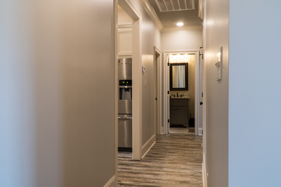 Four additional bedrooms are placed to maximize privacy and convenience. They share two full baths and support the household’s daily rhythms without wasted space.