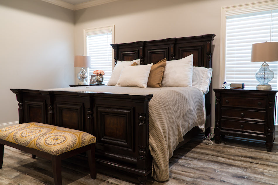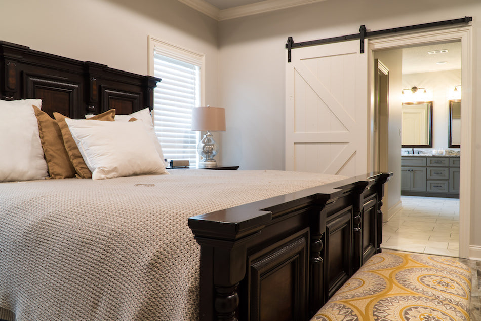 The master suite includes his and her walk‑in closets and a luxurious bathroom with a tile shower and a free‑standing tub — offering both comfort and style. -
