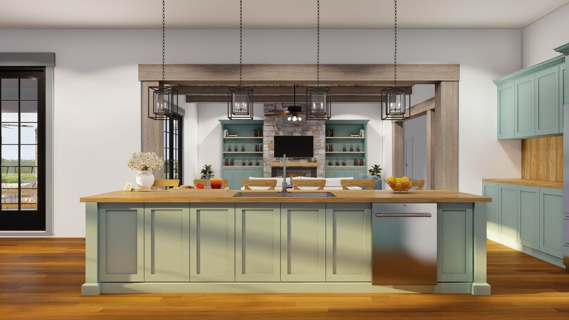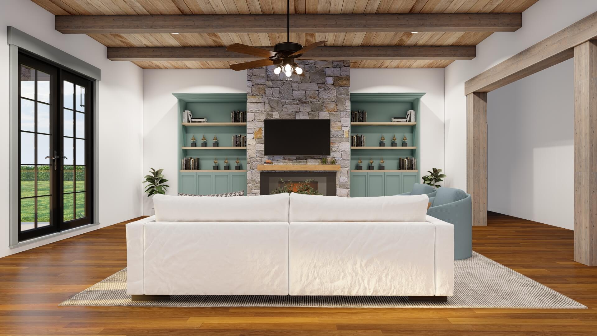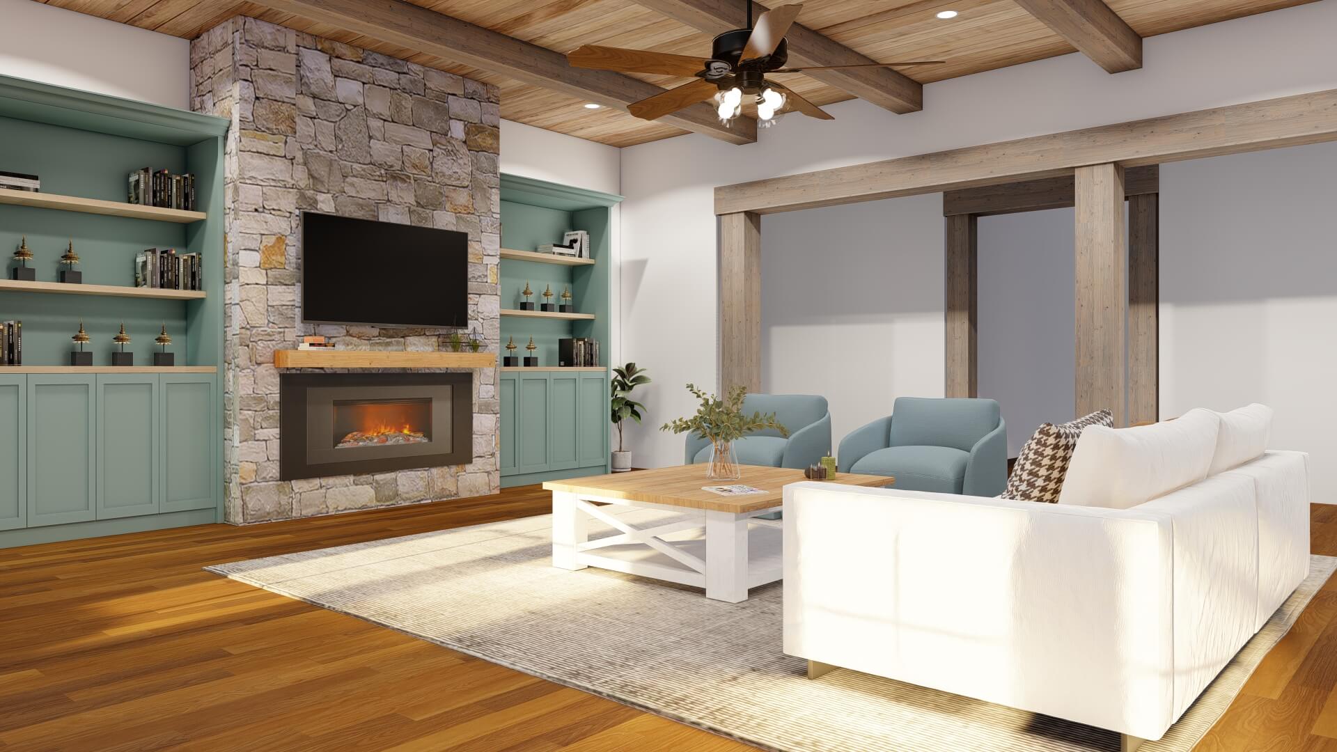 Multiple porches, including a covered front and rear porch, extend the living space outdoors, providing areas for relaxation and enjoyment of the surrounding views.
