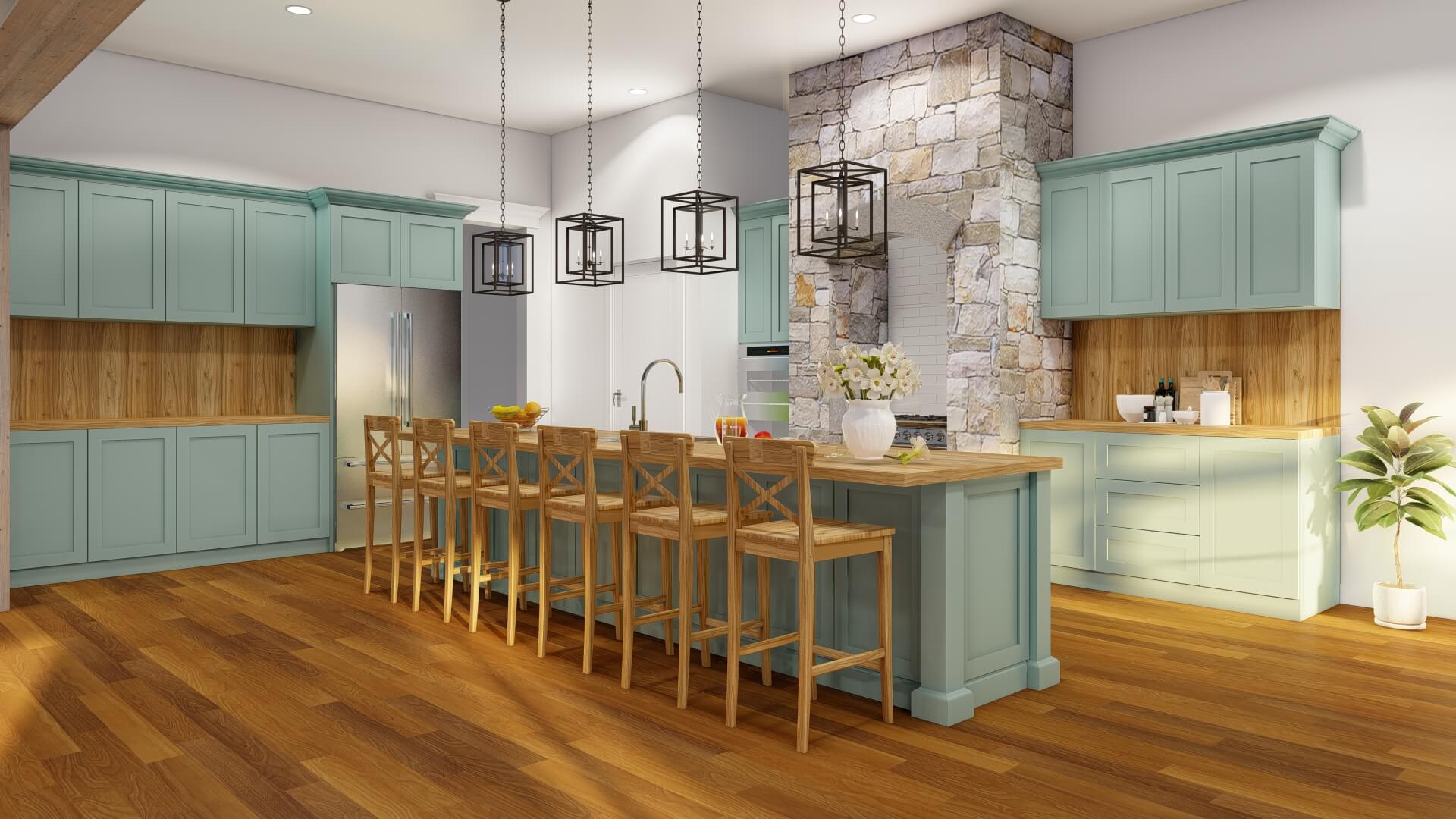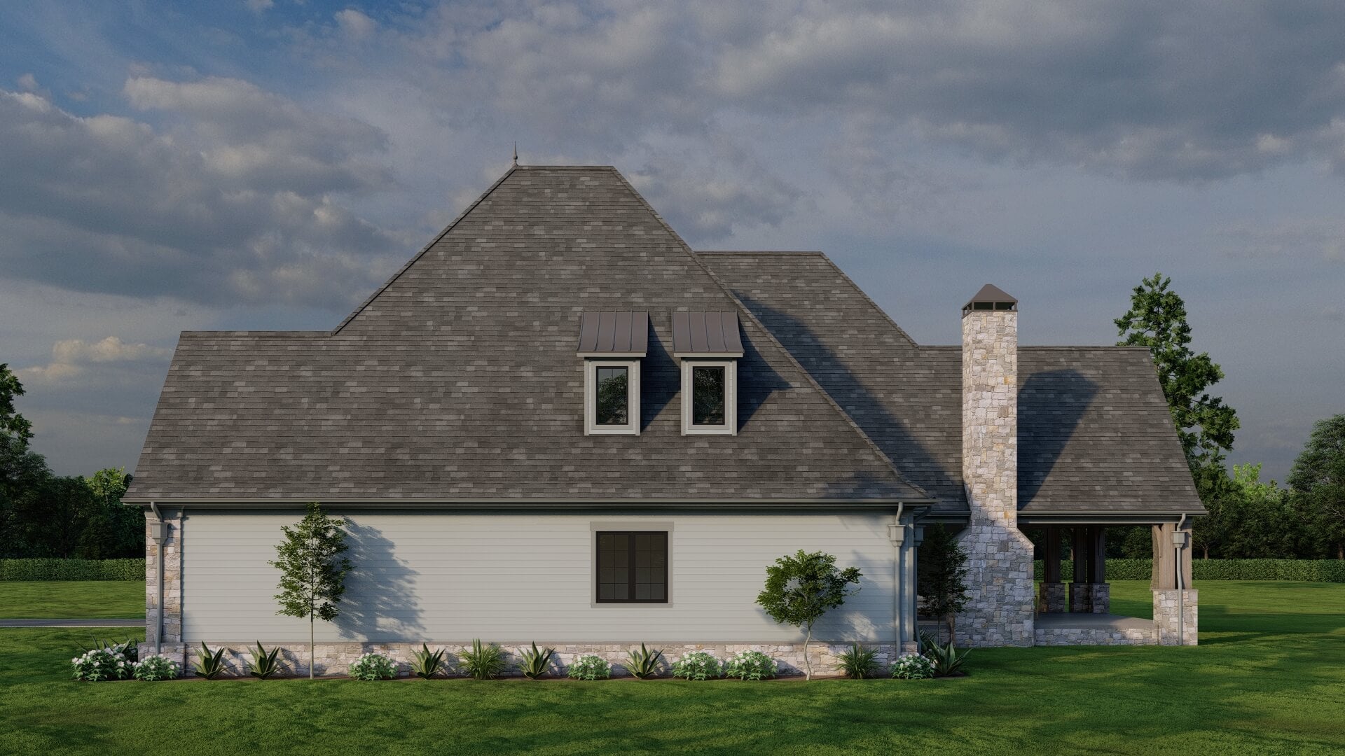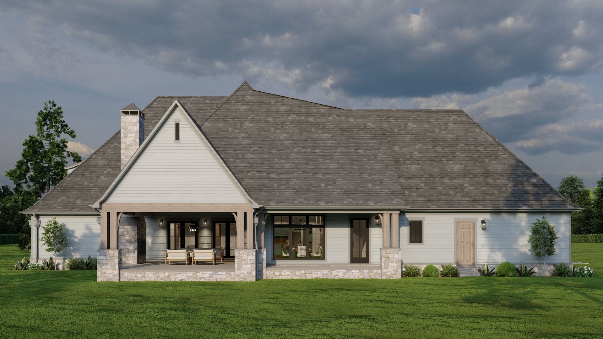 St. Clair encompasses approximately 6,356 square feet of heated living space, featuring 5 bedrooms, 5 full baths, and 1 half bath. The home also includes a 5-bay angled garage and a porte cochère, providing ample parking and a grand entrance. -