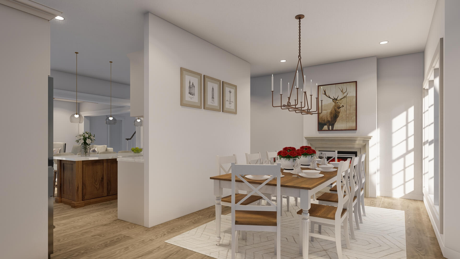 Located around the back of the kitchen, this cozy space features another fireplace and access to the grilling porch, perfect for casual dining and relaxation. -