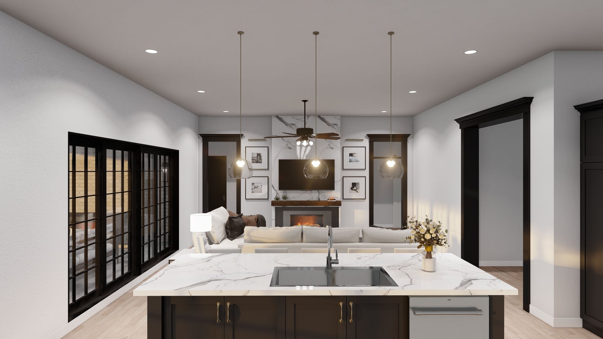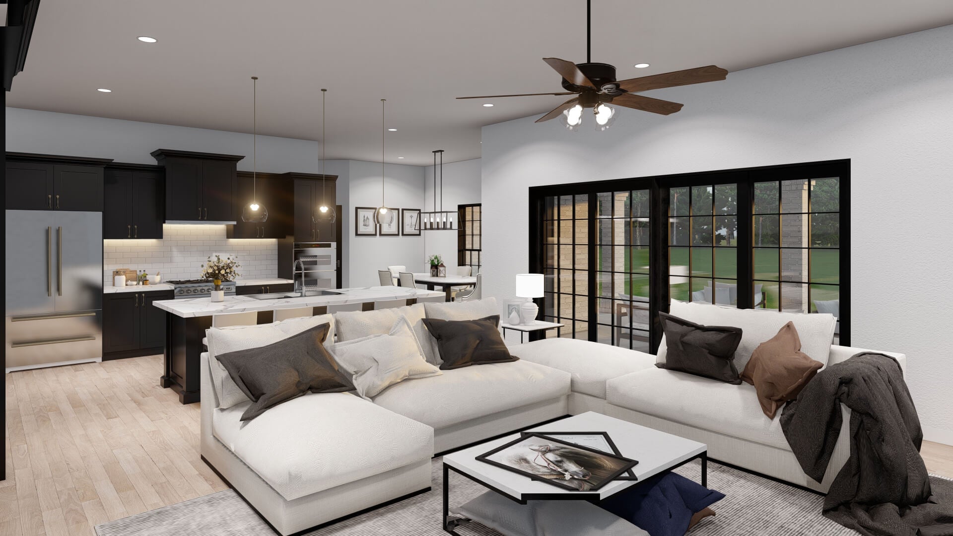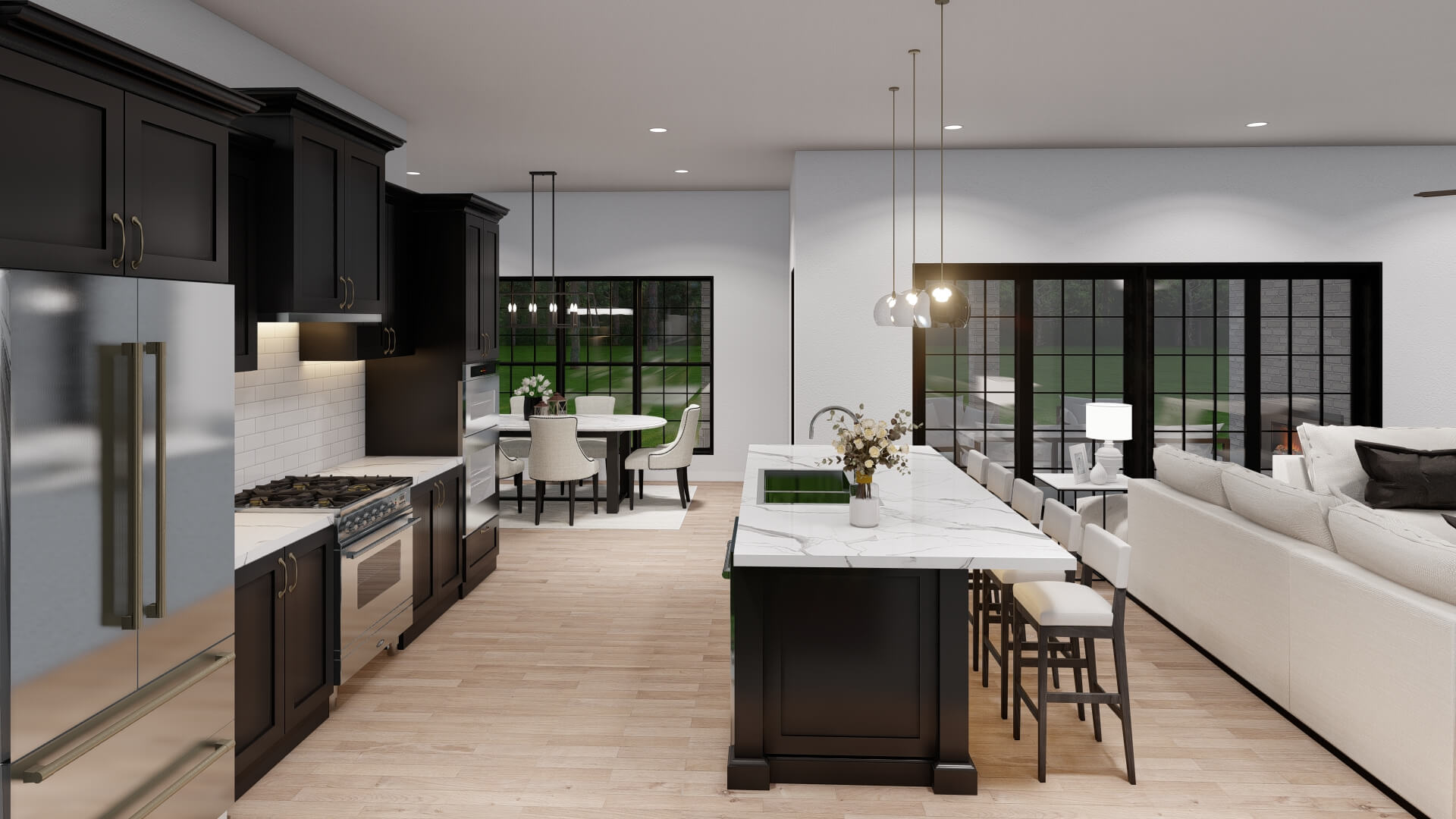 From the foyer, the plan leads you into a great room that flows naturally into the kitchen and breakfast area. A large eat‑at bar enhances interaction, and nearby dining provides versatility for both formal and casual meals. -