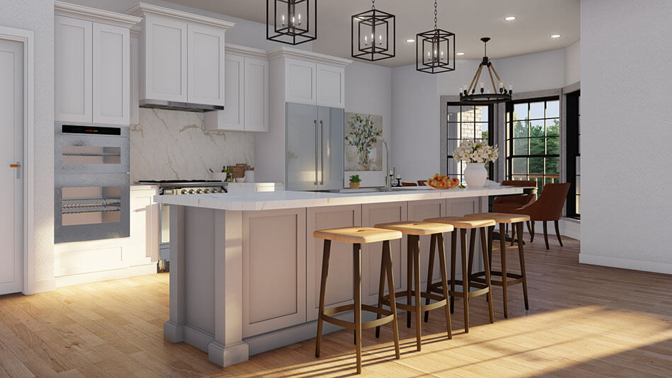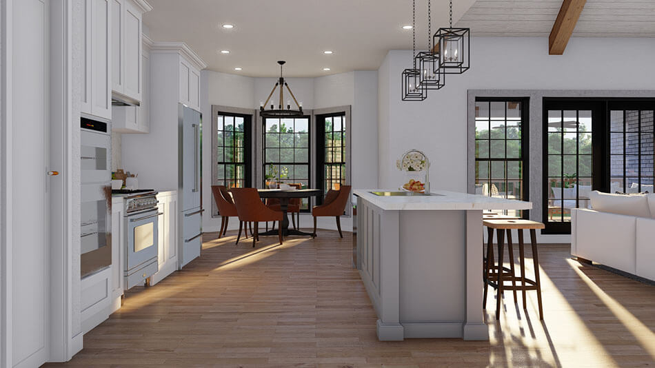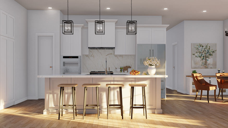 Designed with flow in mind, the great room, kitchen, and dining spaces open into one another in a way that supports both entertaining and everyday living, with generous sightlines and space. -