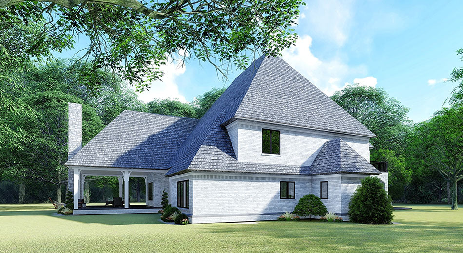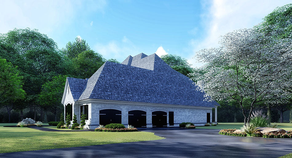 Elegant and grand, House Plan MEN 5205 – Chandler’s Place is a stately European‑style home that commands attention. With nearly 5,615 square feet of living space, this two-story design combines sweeping curves, dramatic rooflines, and architectural detail to evoke a refined, luxury aesthetic. From the arched façades and covered porch up front to the sophisticated interior layout, Chandler’s Place is built for both presence and comfort.