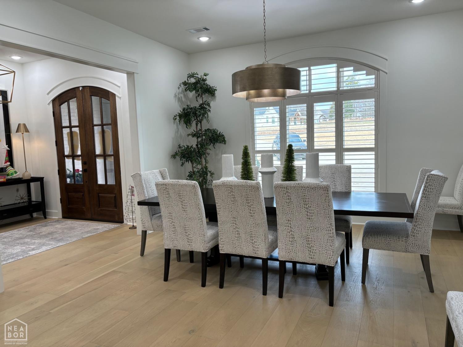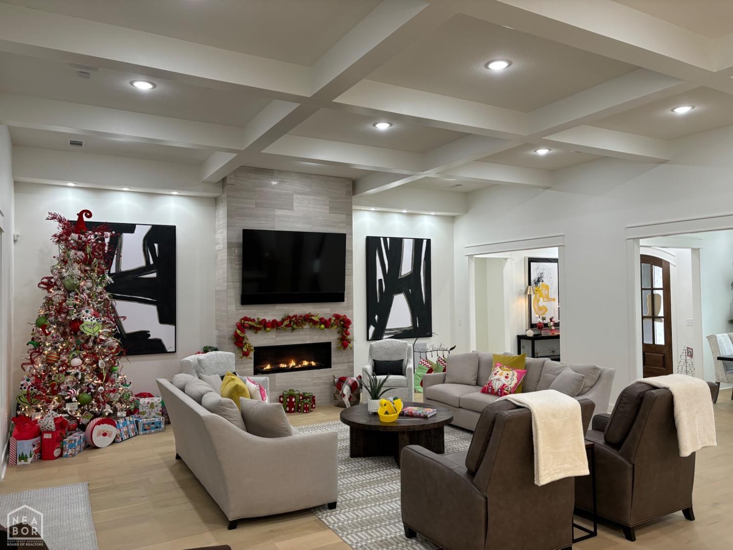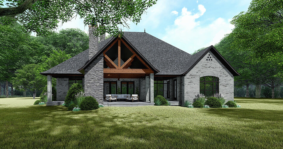 - Spacious Living Areas: Enter through a covered entry porch with stone steps into a large foyer, setting an elegant tone. The open floor plan combines the great room, kitchen, and breakfast room under vaulted ceilings with exposed timber beams, creating an airy, welcoming atmosphere.