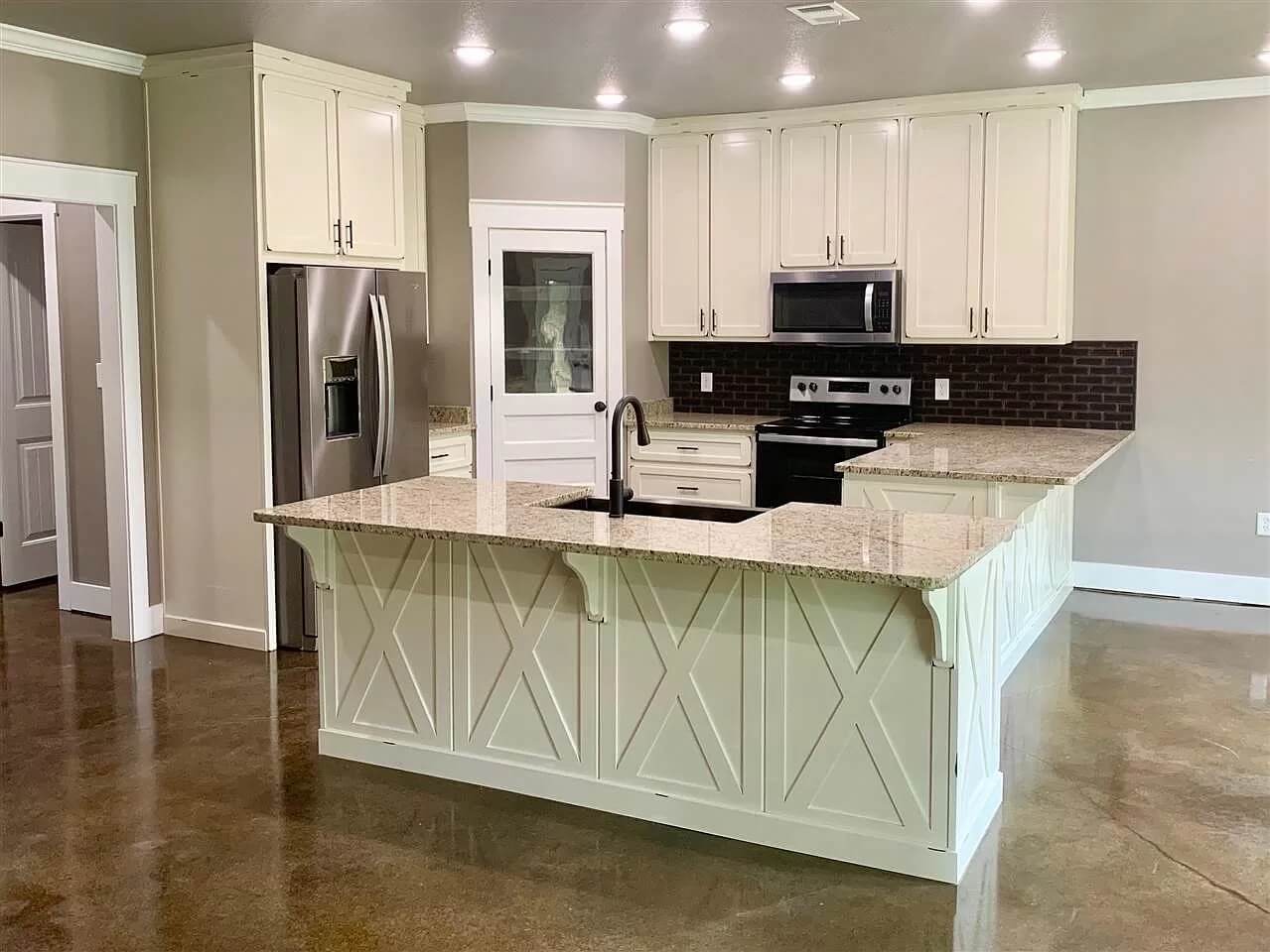 - Functional kitchen design: A center island with seating for four gives you both workspace and gathering options. The sink and dishwasher face the living areas to keep you engaged with guests or family while you prepare meals.