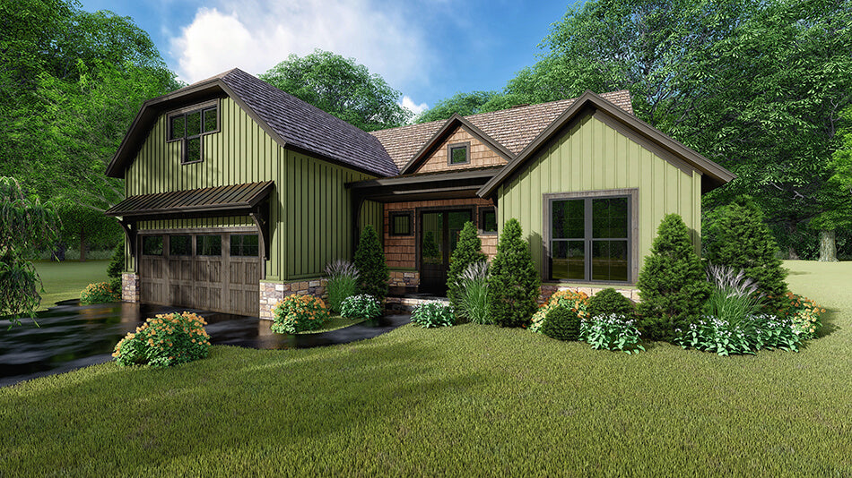 - Curb appeal & exterior styling: Gables with board‑and‑batten siding and shake accents lend visual interest and farmhouse warmth.