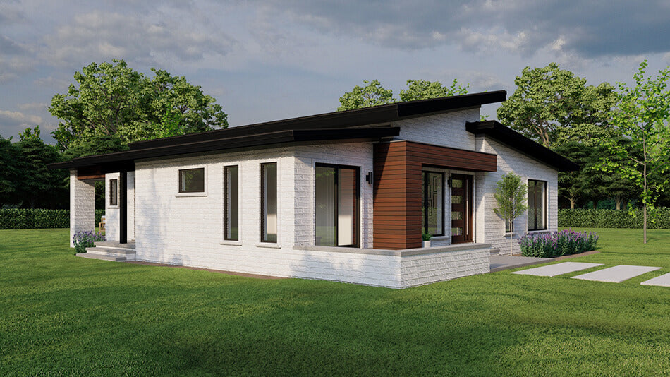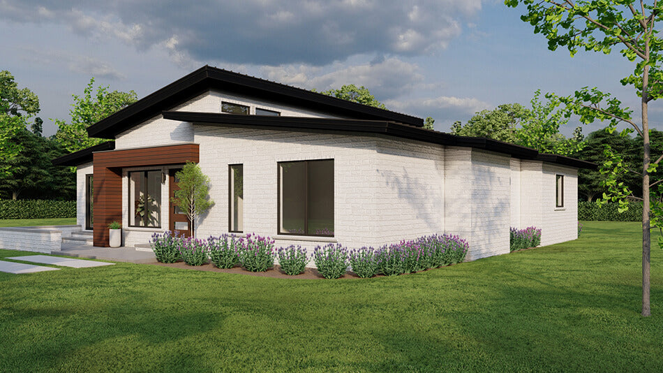 The combination of dramatic curb appeal and functional living spaces makes this plan ideal for modern-minded homeowners. Its sleek roof lines, bold contrasts, and thoughtful layout strike the balance between form and function. Whether you're building your first home or upgrading to a contemporary design, this plan offers both style and practicality.